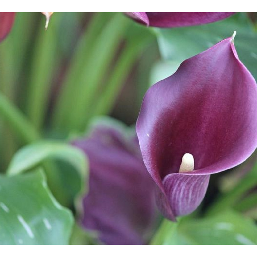 ‘Accent’ is a new variety of calla lily having inflorescences with a purple-colored spathe that produces 4-14 inflorescences per tuber. The inflorescence stems are about 35 cm in height, and the leaves are green with whitish spots and have a leathery texture. Popular for contemporary floristry and wedding flowers.