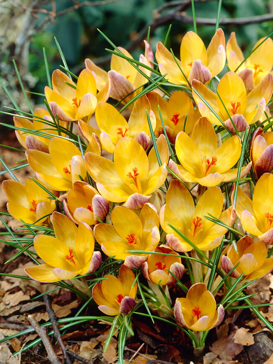 Awaken your garden from its winter slumber with these cheery bicolor yellow flowers blushed with dusky plum-purple on the outer petals. Petals open wide with the sun to flaunt fiery orange stamens and yellow throats. Crocus Advance multiply rapidly and bloom quite early to extend the crocus blooming season. The bright color combinations, hardiness, bunch-flowering habit and early flowering make Crocus a must in the garden.