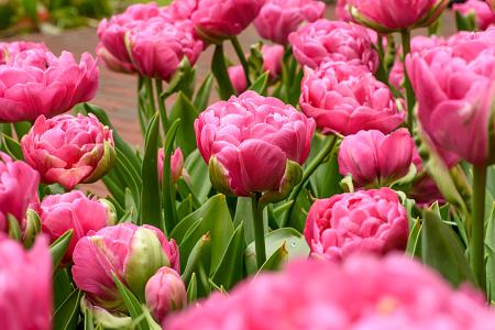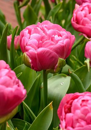 Tulip Amazing Grace is jam-packed with layers of petals. Amazing it is! Satiny, softly fragrant blossoms open lavender pink then transform to rich, rose pink. Some outer petals may be flecked with green. Double Late Tulips are also known as Peony Flowering Tulips because they closely resemble a peony blossom.