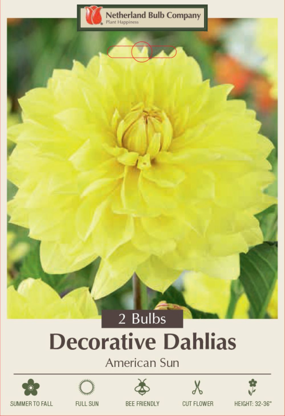 American Sun is a beautiful, happy yellow flower that is unique and tropical in its own way. This variety has bright buttery pineapple petals and slightly orange brushed tips, in the beginning of the season this flower starts blooming slow, but soon gives off many more blooms than you thought possible. Even though the plant is smaller in stature, it truly is a wondrous sunny flower.