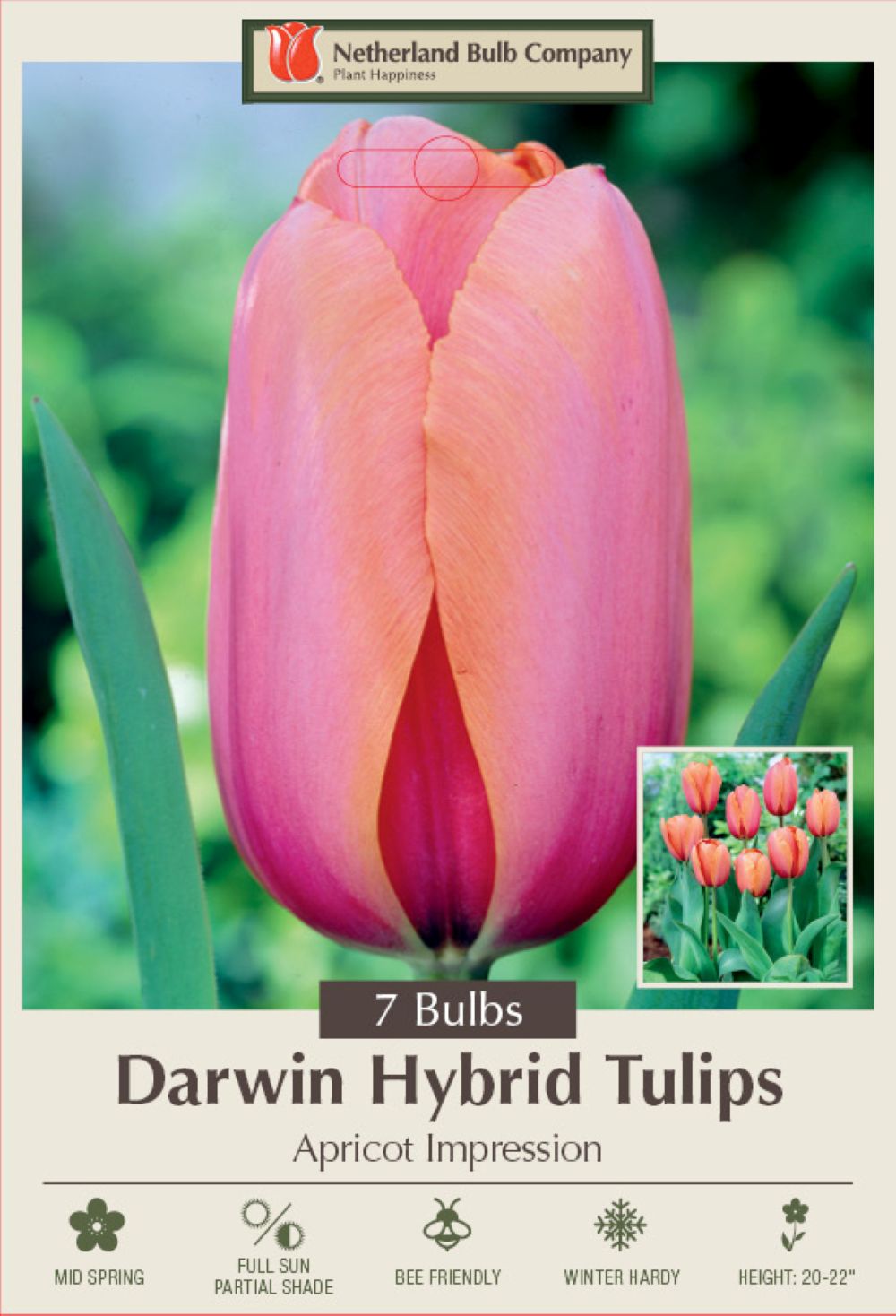Apricot Impression Darwin Tulip - 12/+ cm Bulbs -7 Bulbs