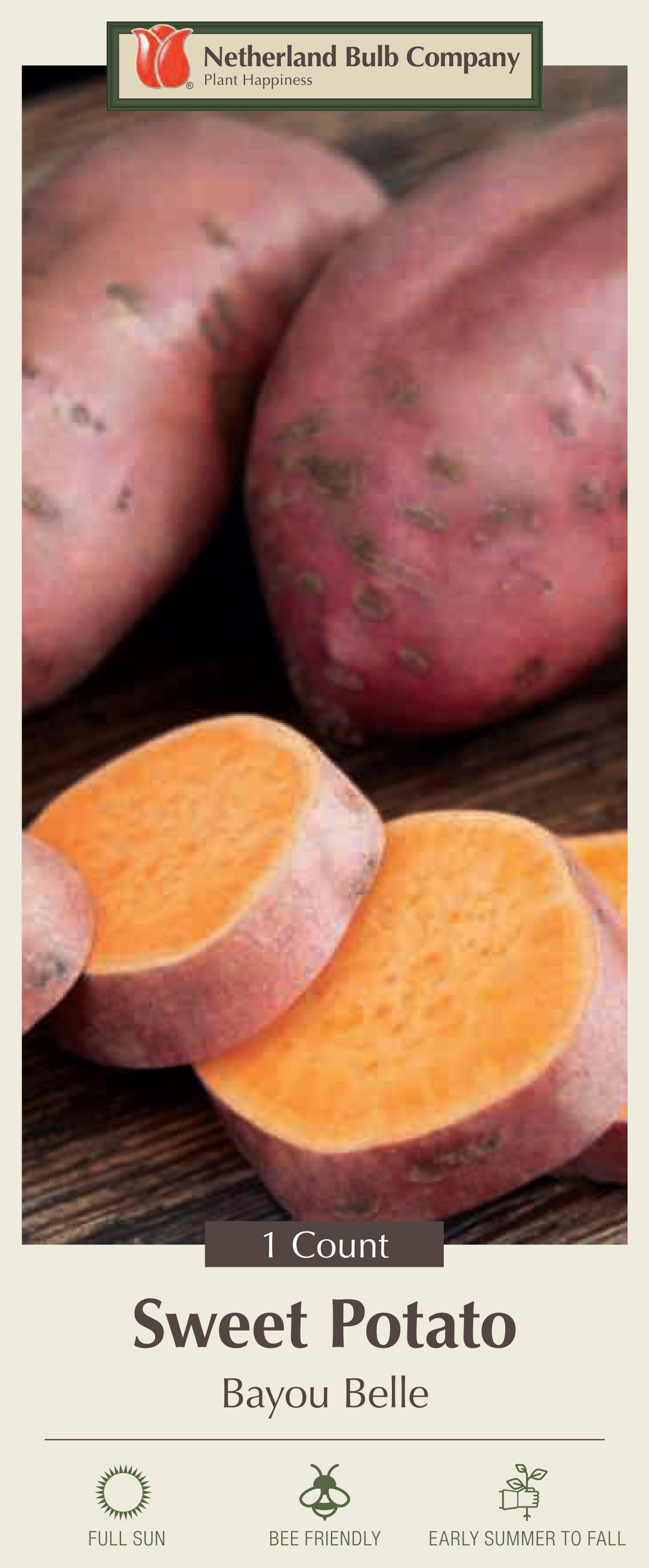 BAYOU BELLE is a new deep orange flesh, red/purple skinned sweet potato. Sugar content is similar to Evangeline; however it has a more firm texture when baked. The crop cycle of Bayou Belle is 90 to 100 days, shorter than the Beaugard (110-120 days) and presents consistently yields 10 % higher than 'Beauregard'.