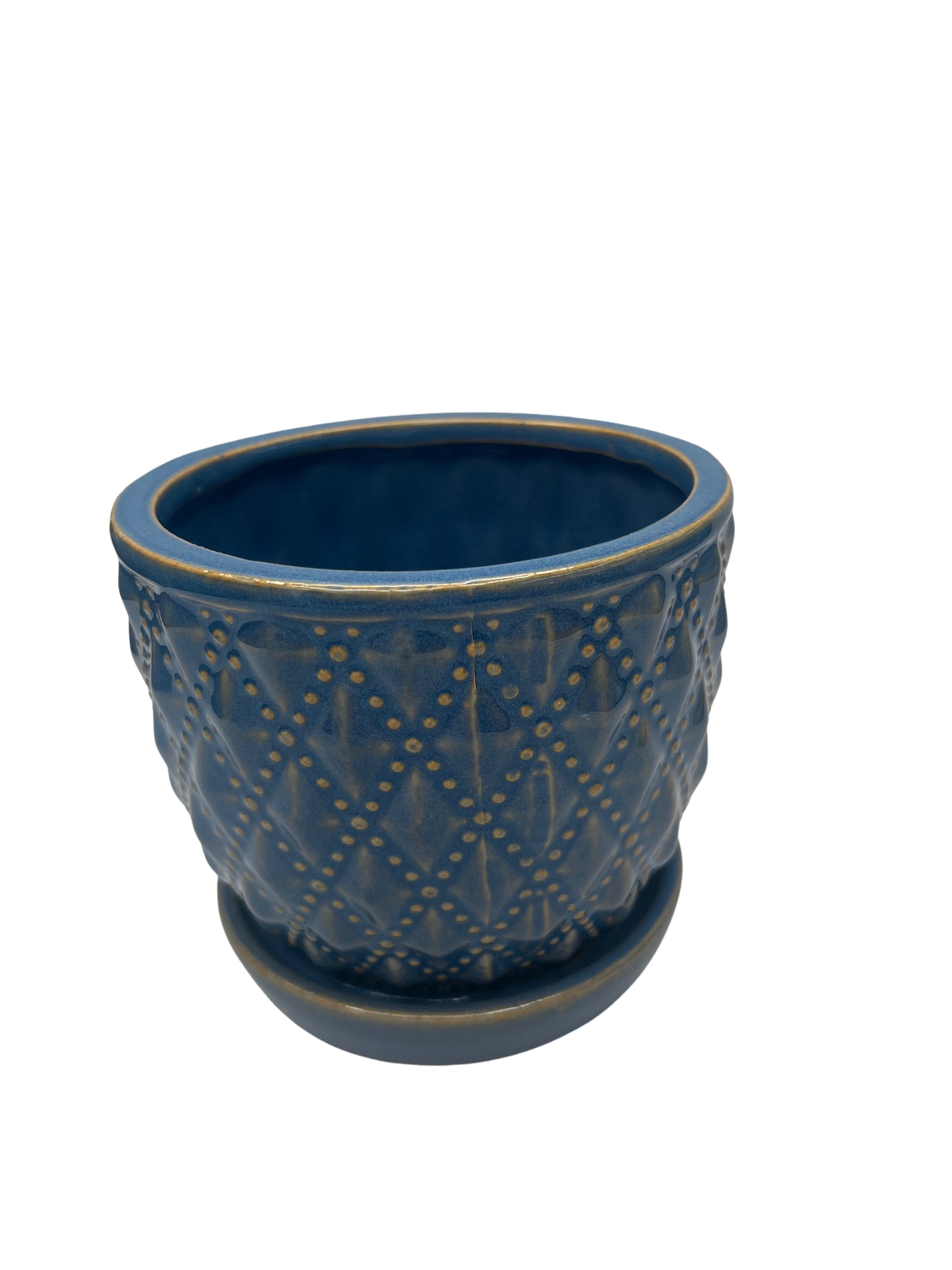 Beaded Diagonal Planter with Attached Saucer - Tourmaline - 5.5" x 4.75