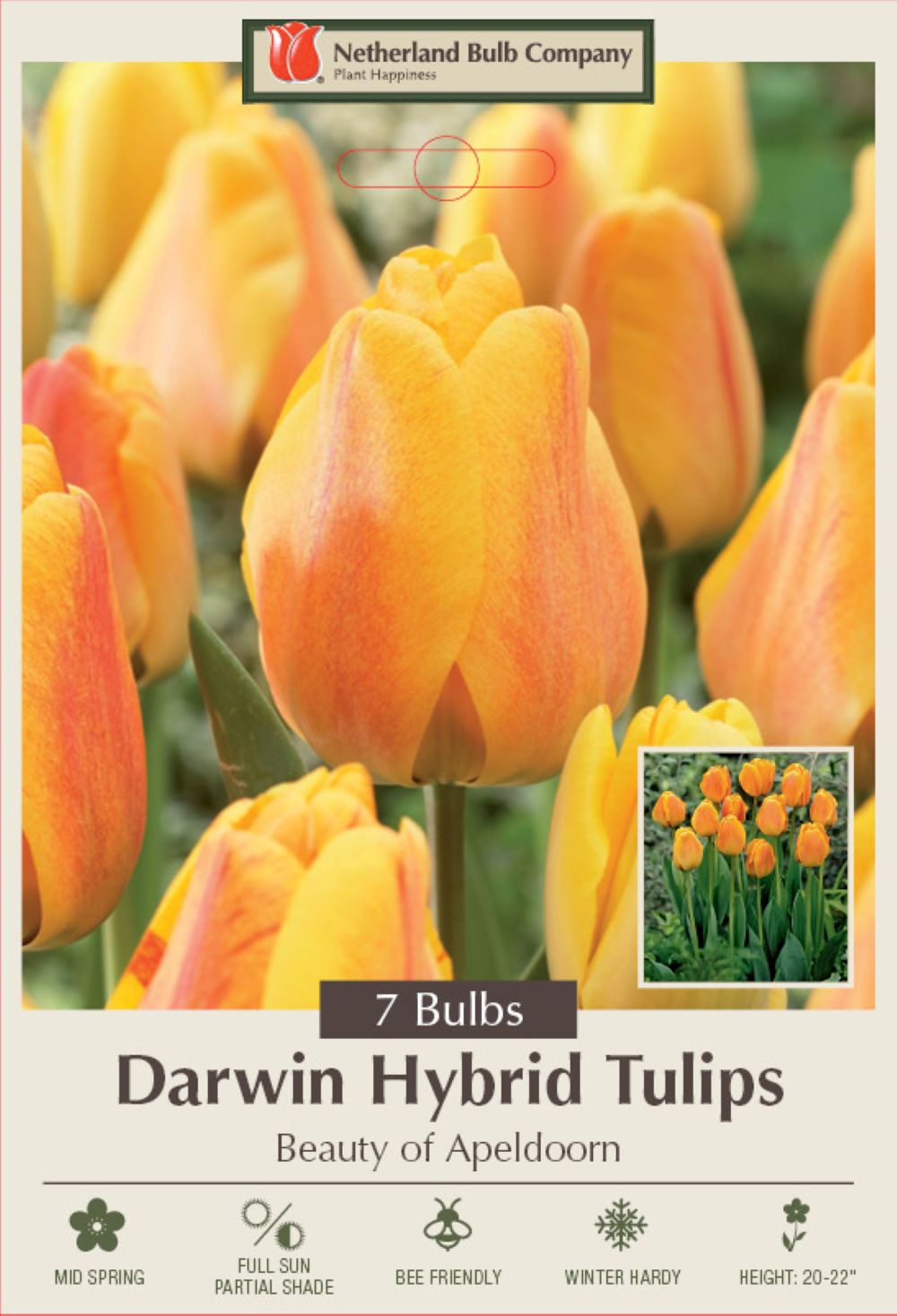Beauty of Apeldoorn Darwin Tulip- 12/+ cm - 7 Bulbs - Giant Blooms
