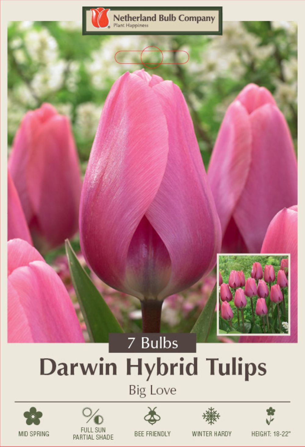 Big Love Darwin Tulip - 12/+ cm Bulbs -7 Bulbs - Large Flowers
