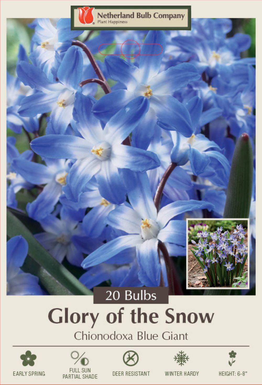 Blue Giant Glory of the Snow - Chionodoxa forbesii - 5/+ cm Bulbs -20 Bulbs