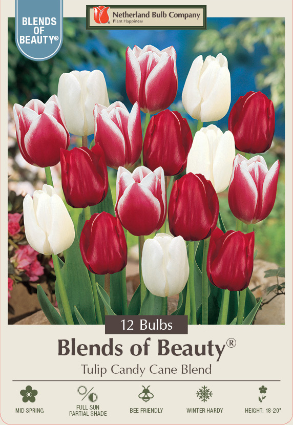 Candy Cane Mix Triumph Tulip 12 Bulbs - Red & White - 12/+ cm Bulbs