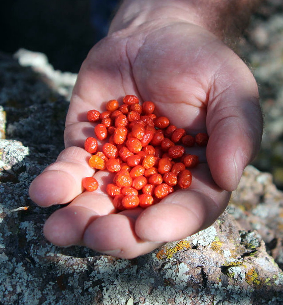 The Chiltepine is a very small chile in size and has a quite distinctive smoky bite. The Chiltepin is eaten sun-dried, added to cheese and ice creams, fermented into sauces, and pickled with wild oregano, garlic, and salt as a tabletop condiment.