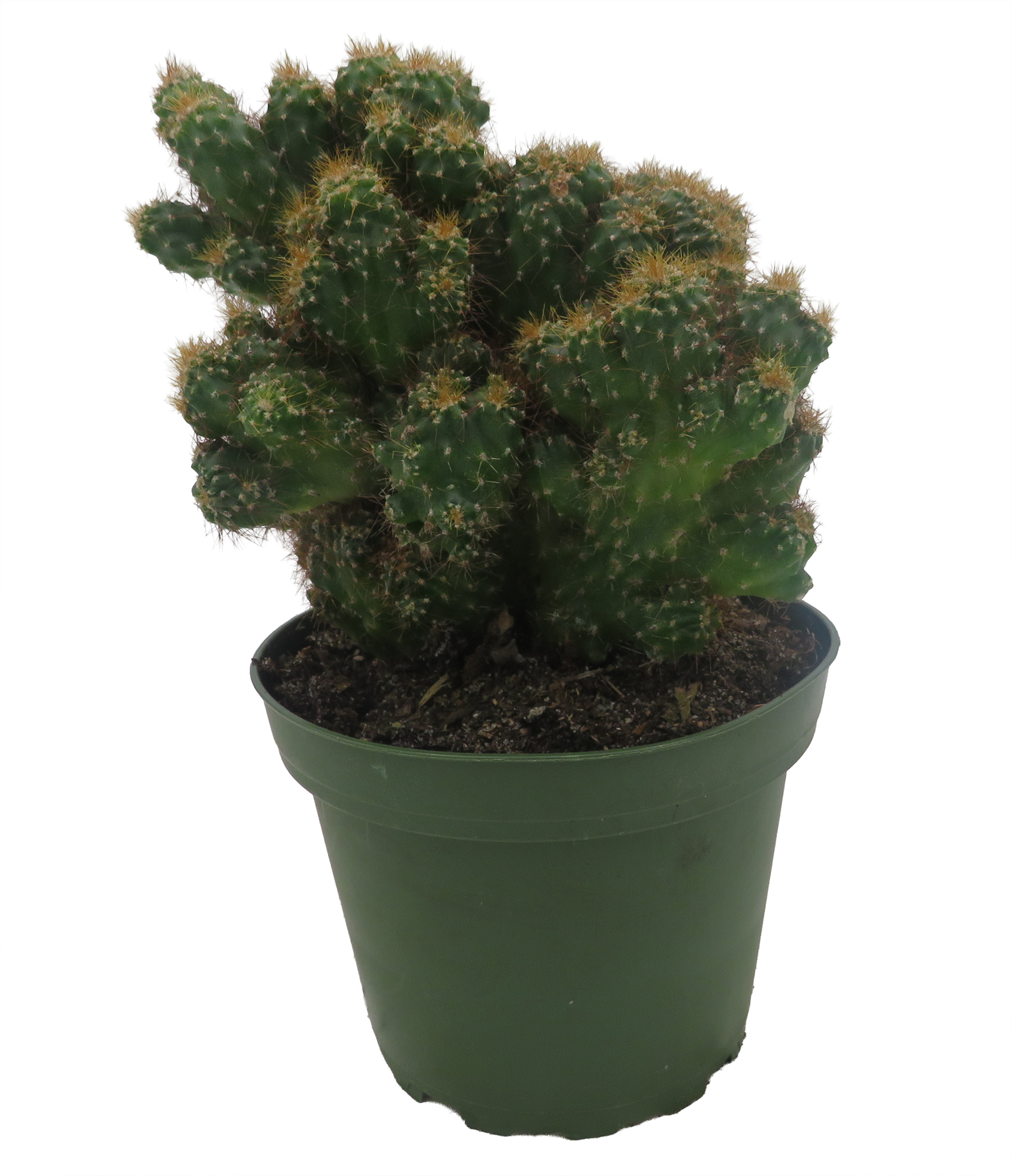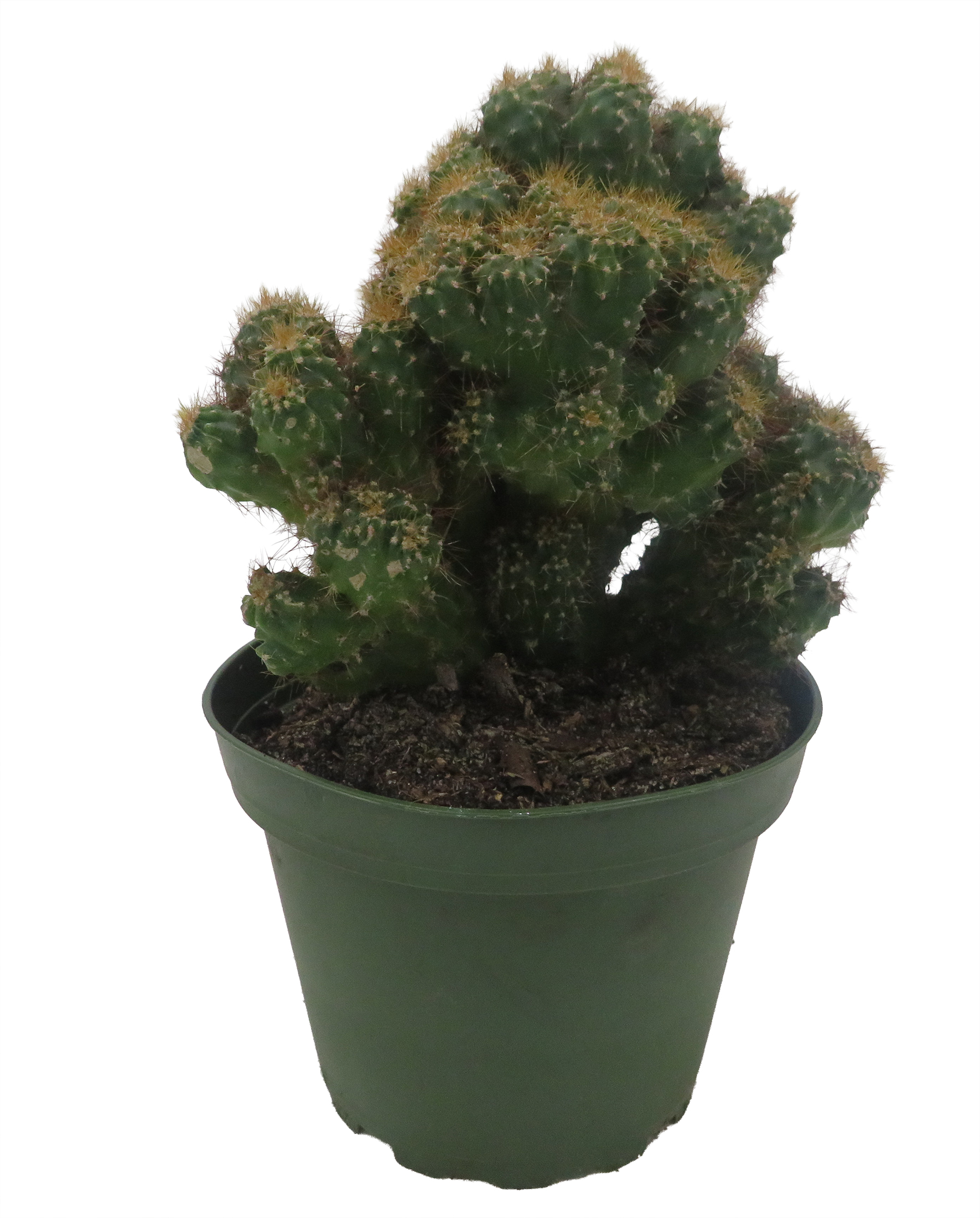 The Crested Red Monstrous Cactus is a rare, highly sought-after cactus known for its knobby stems and coppery red spines. They have a distinctive, yet irregular growth pattern with a unique, sometimes brain-like appearance. Provide full or part sun and water when dry. Excellent as a house plant, open terrarium or fairy garden