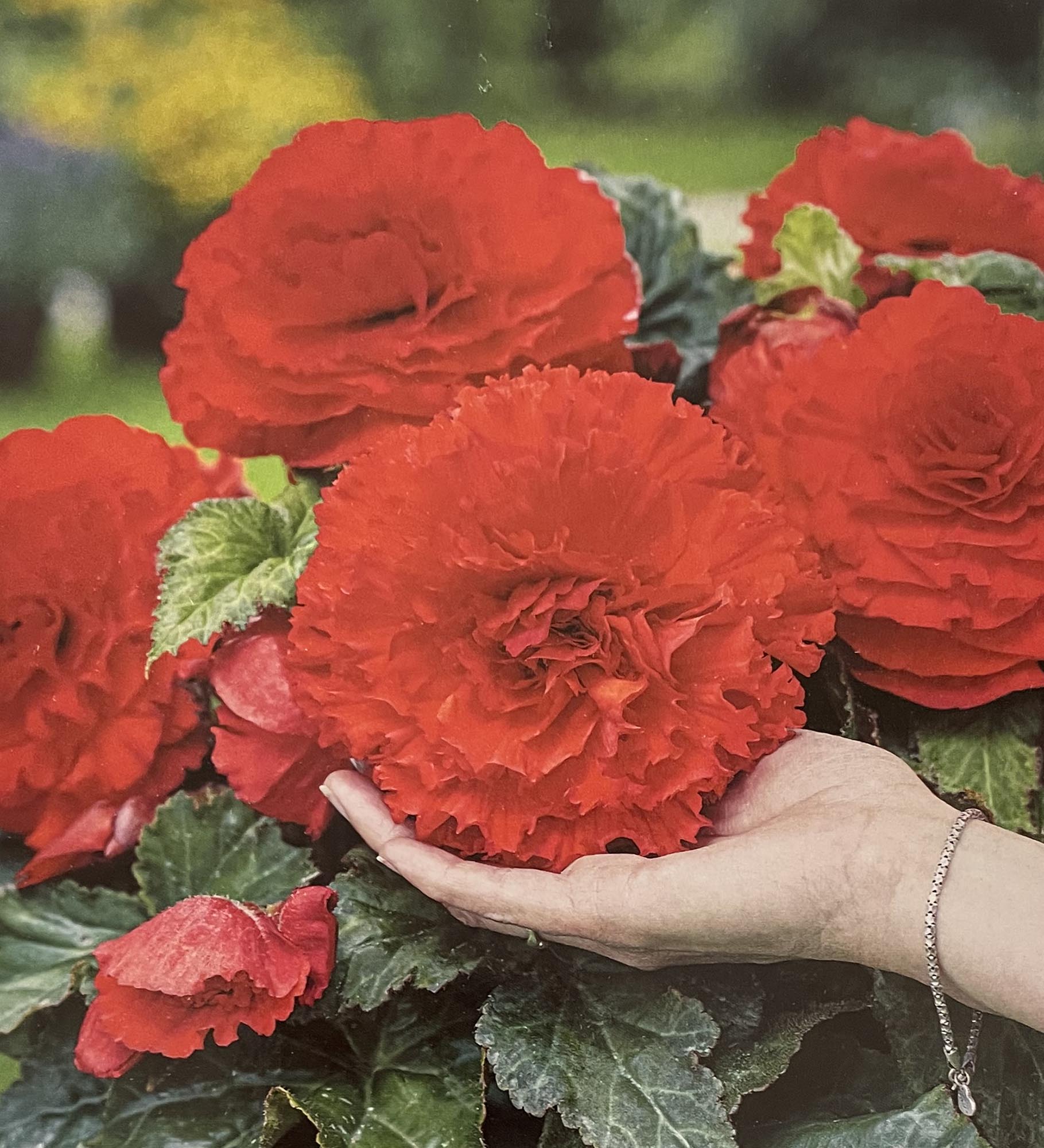 Large 6-8 inch blooms make a wonderful focal point for shady areas. Fully double in bright, non-fading colors. A superb variation of the double begonias with the flowers having lovely fringed petals. They provide long-lasting vibrant color and beauty. Plant in partial shade. They are easy to grow if they get plenty of water and protection from wind and direct sunlight. Adds floral beauty to porch, patio or window box.