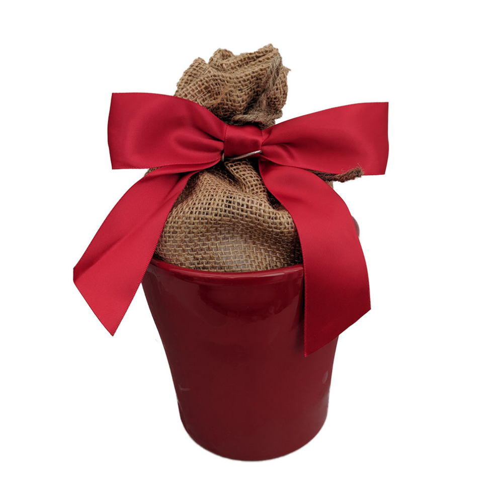 Dancing Queen Double Amaryllis in Red Ceramic Planter with Bow & Gift Tag