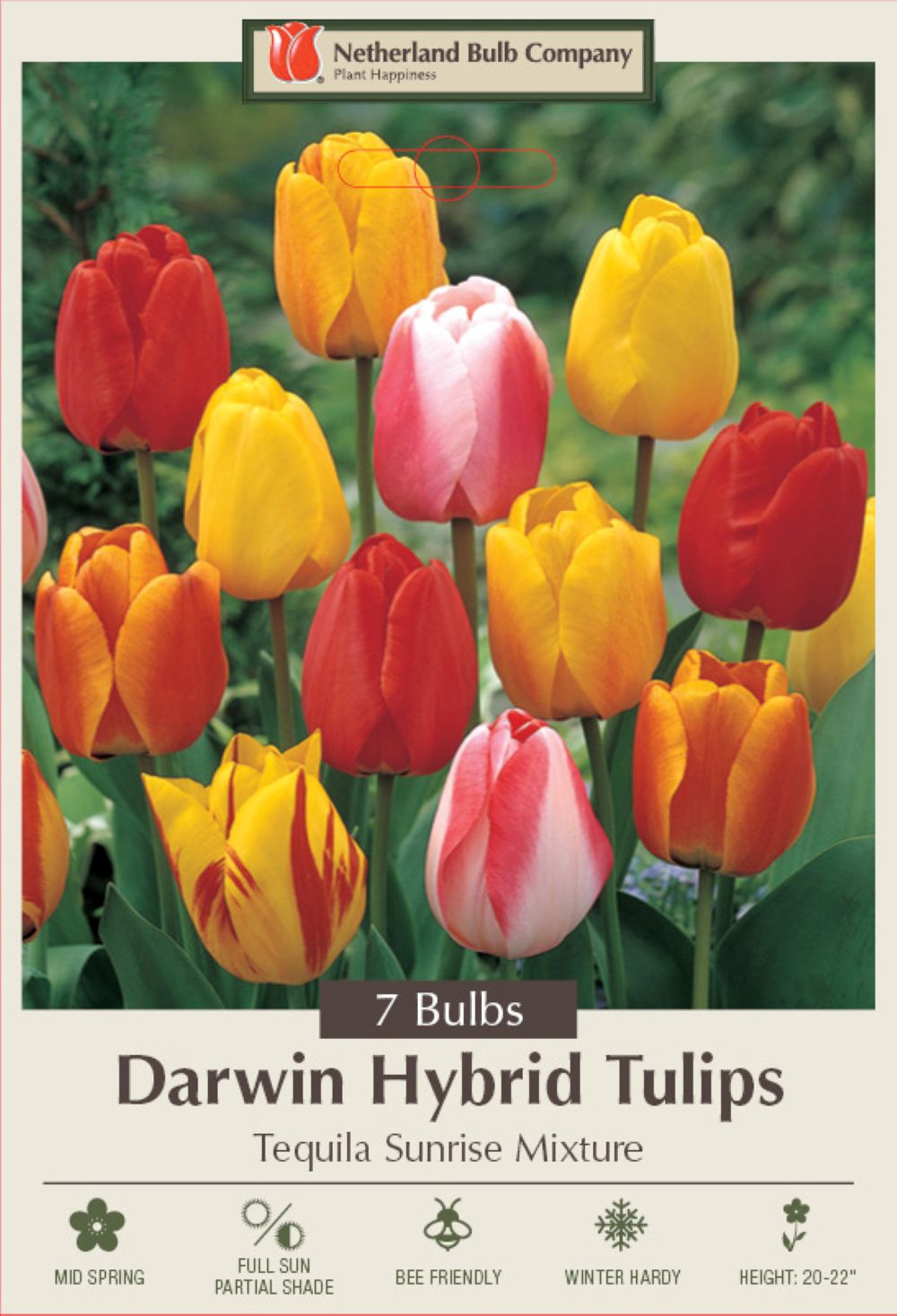 Darwin Hybrid Tulip - Tequila Sunrise Mix - 12/+ cm Bulbs - 7 Bulbs