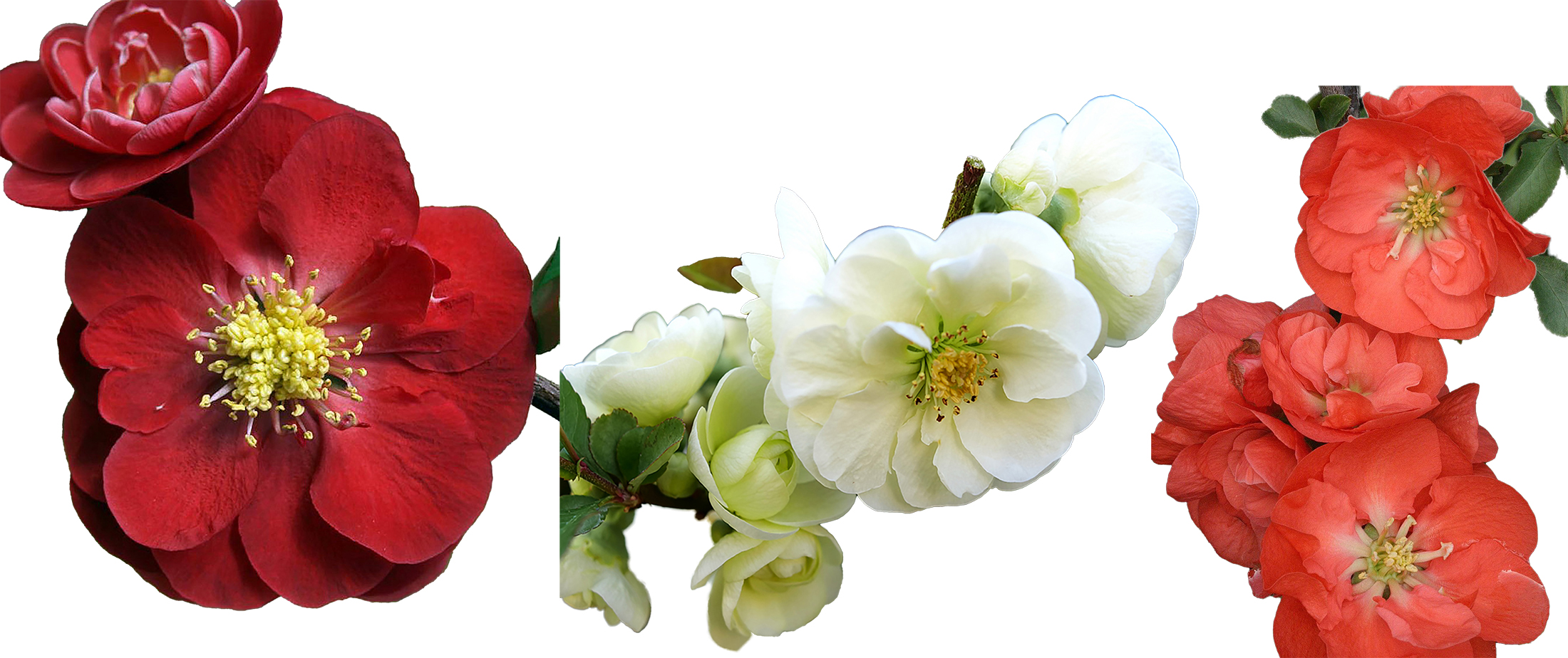 The Double Take quince are more than just pretty spring flowers; thornless and deer resistant, they do not produce fruit, and are drought tolerant once established. You will receive three Double Take Quince plants, each growing in a 4" nursery pot. 1 Scarlet, 1 Eternal White and 1 Orange.