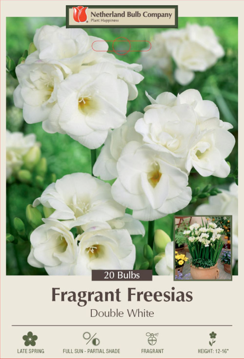 Double White Freesia 20 Bulbs - Pure White - Fragrant - 6/+ cm Bulbs