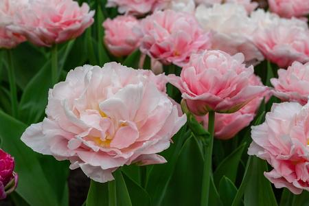 Lush double tulip variety combines an abundance of soft, apple-pink petals with a playful accent of green on its outermost petals - furthering its resemblance to the proud, later-blooming peonies. Dreamer's long stems make it great as a cut flower.