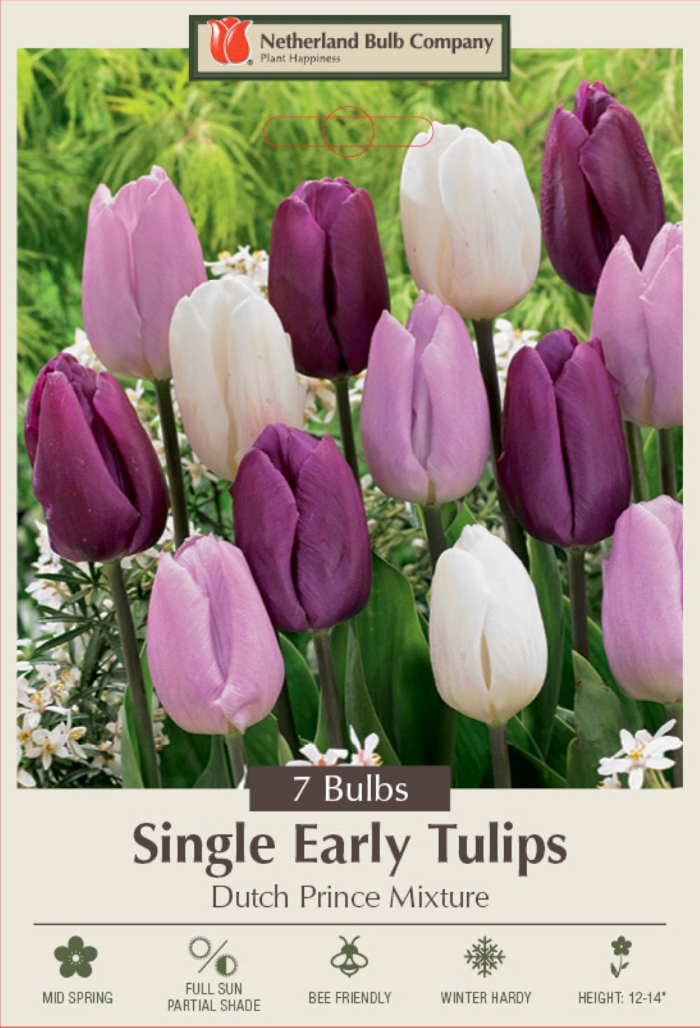 Dutch Prince Mix Tulips 7 Bulbs - 12/+ cm - Single Early Blooms