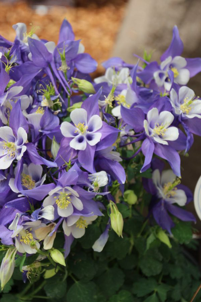 Delicate yet sturdy upright stems top the bushy mound of deeply-cut green foliage, supporting large, blue and white upward-facing flowers with delicate blue spurs. Requires less of a winter chill than other varieties and will bloom earlier in the season. Excellent for mixed borders and rock gardens. An herbaceous perennial.