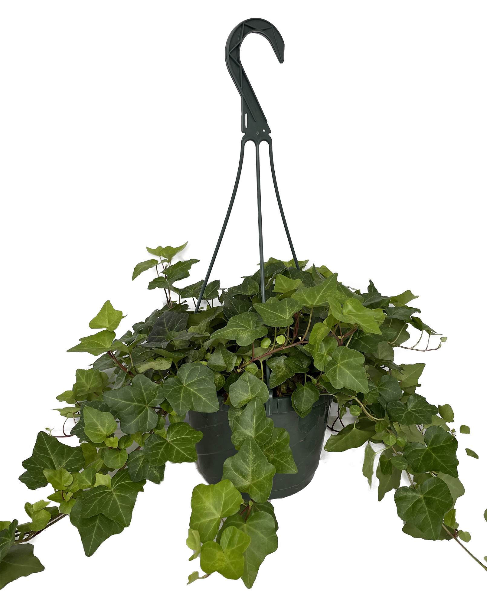 Hedera helix is commonly referred to as English ivy because English settlers brought it to America. Most species are native to Northern and Southern Europe and Northern Africa. Ivies are climbing vines that cling to upright surfaces by their roots, which sprout from the stems and work into any available crevice. Given the support of a thin stake, a single stem can be trained to grow upward and then branch out to make a little ivy tree. The vines can also be trained to cover fanciful shapes formed of wires stuffed with sphagnum moss. Usually, the trailing stems are allowed to cascade over the sides of pots or hanging containers.