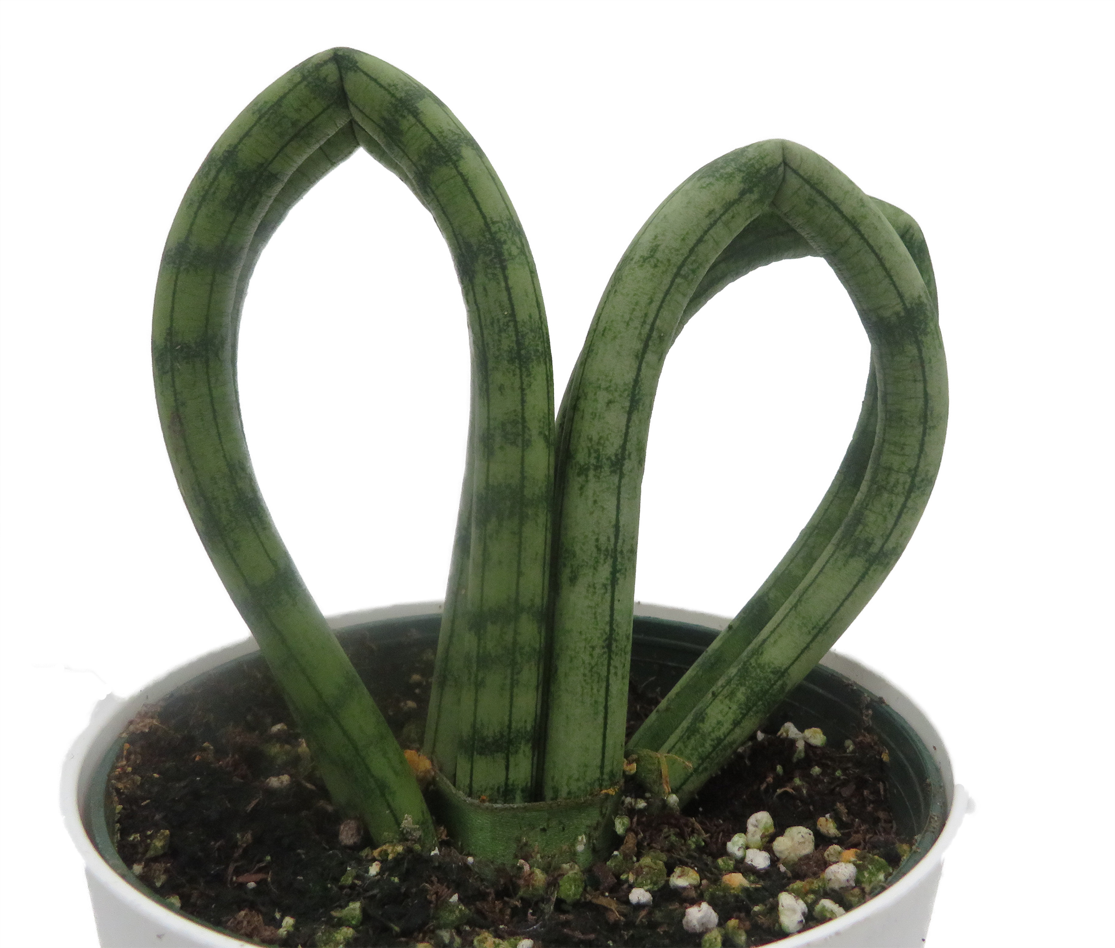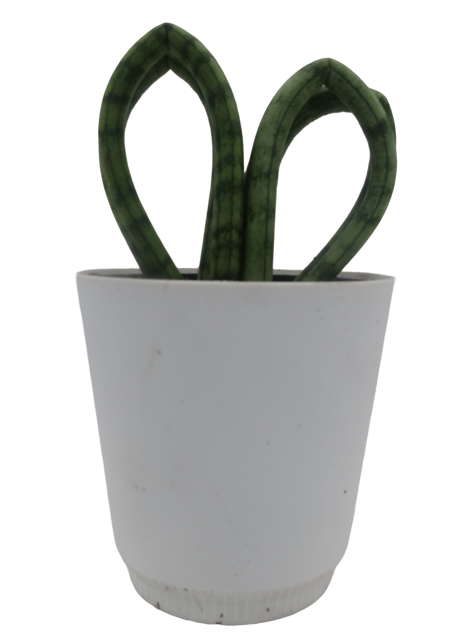 You will receive a 4" heart sansevieria plant growing in a white pot.