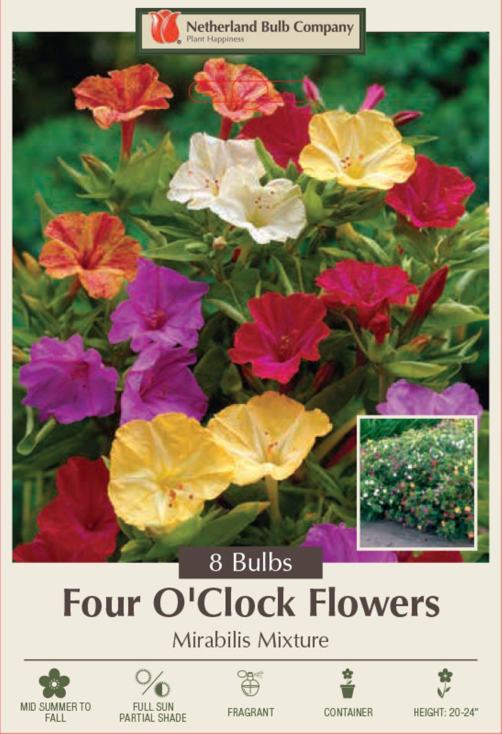 Four O'Clocks Mixed Colors - 8 Roots - Mirabilis jalapa