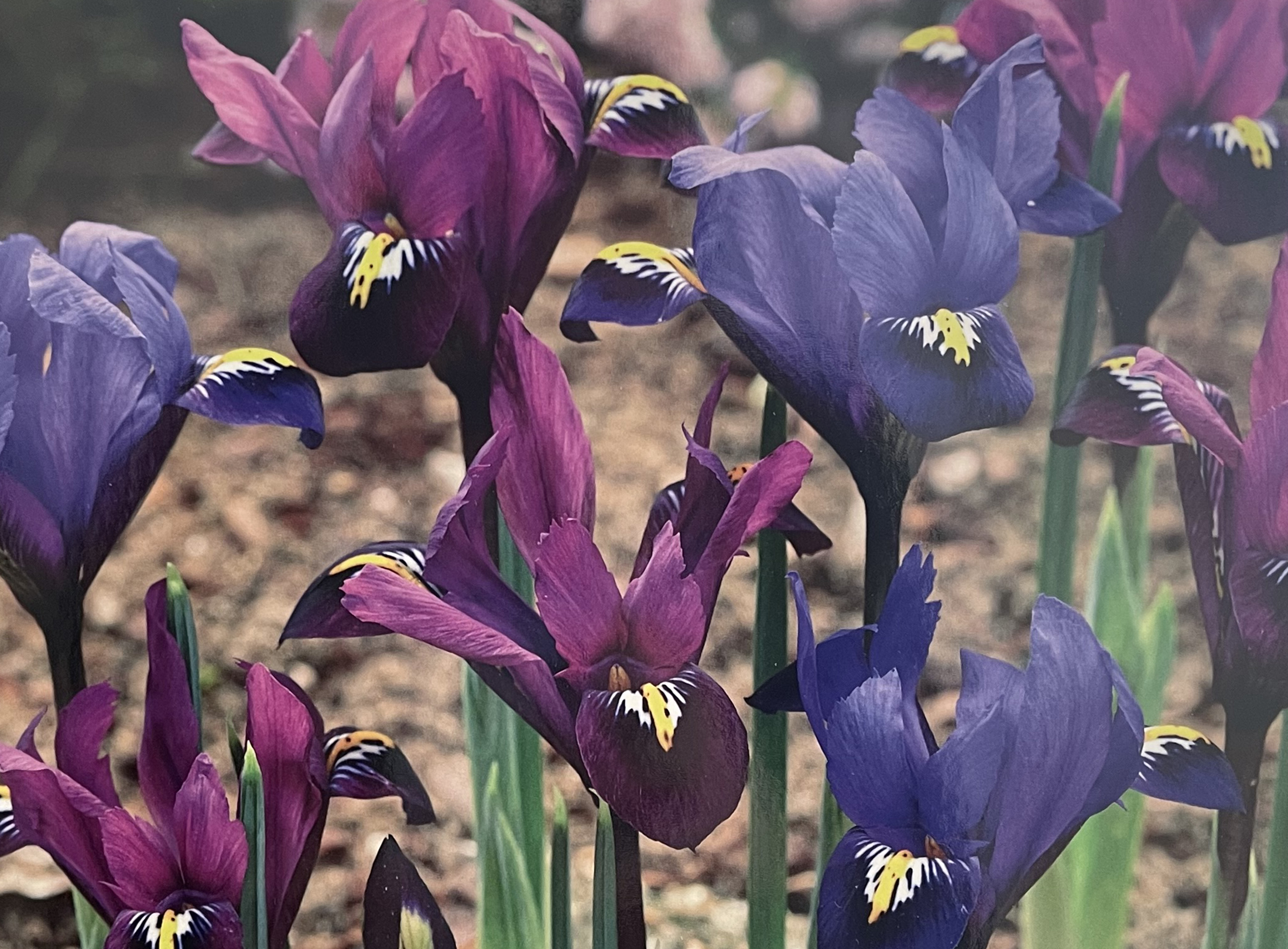 Two siblings of Reticulata Iris with intricate-patterned petals birth marked with white signals slashed with a yellow stripe are obviously from the same family. One clothed in rich royal purple and one in violet purple, our Perfect Partners Fraternal Twins will lovingly frolic together in harmony. Smaller statured and sweetly fragrant; they are perfect for rock gardens, border fronts and sidewalks.