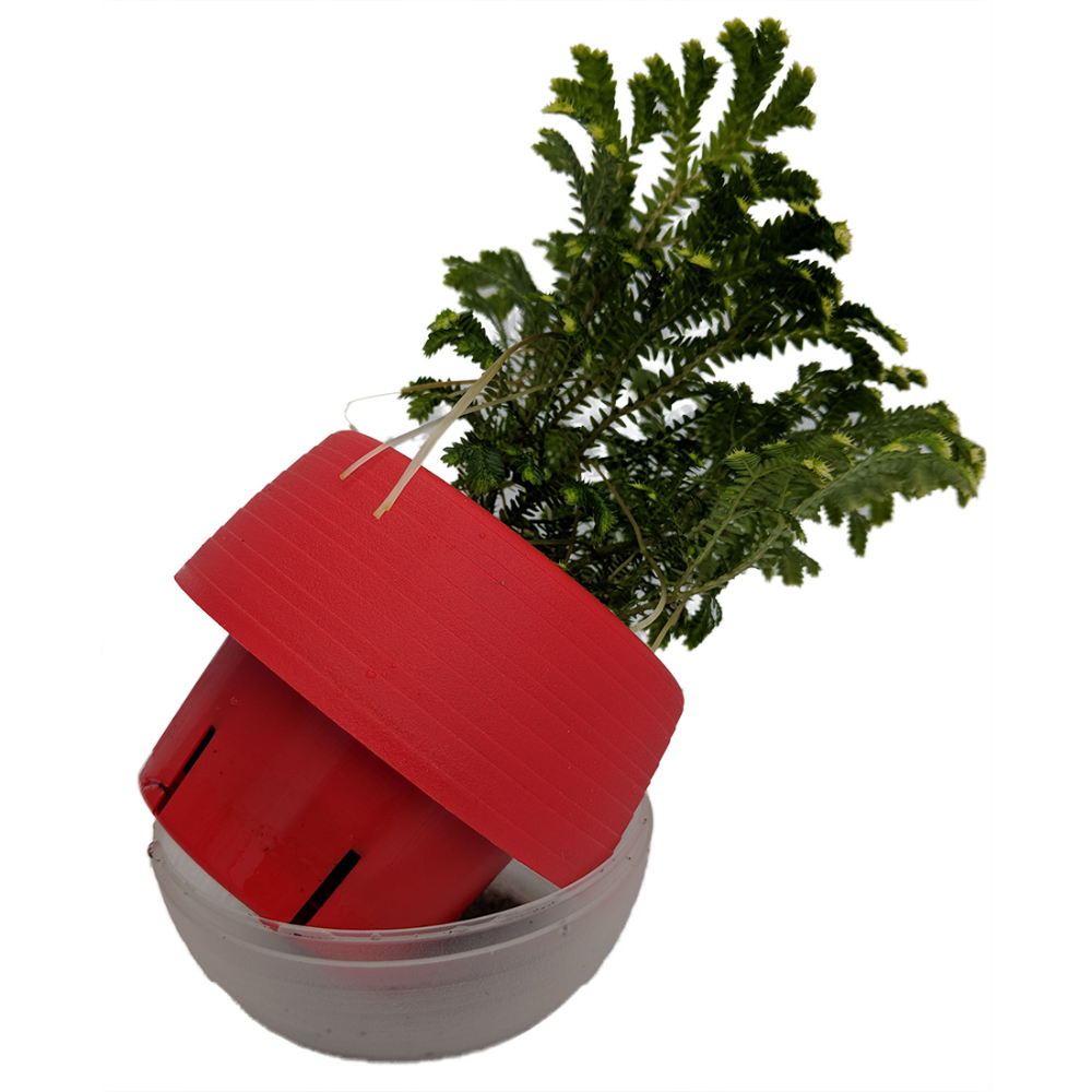 The Frosty Fern is growing in a low maintenance, self-watering pot.