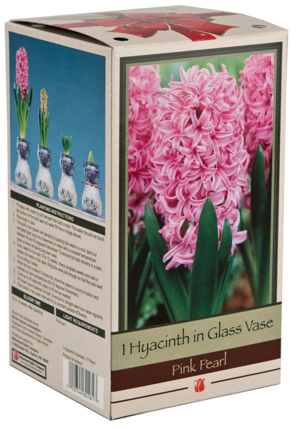 Gift-boxed Kit with fragrant Pink Hyacinth includes elegant "growing vase", bulb & instructions. Just add water. Measurements are appproximate.