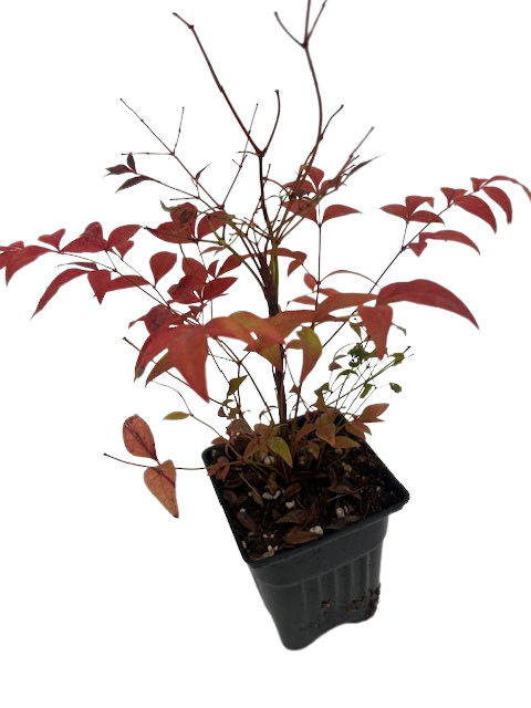 Commonly called Heavenly Bamboo, Nandina can be used in virtually any part of the landscape and is especially useful in full or part sun, where the foliage color is superb. The new growth is often bronze to rose in color, becoming green with age. In the fall and winter, the growth takes on autumn leaf colors: red, orange, bronze and pink. The plant has added value in that it provides cut branches for use in floral arrangements year round. As the plant matures, late summer and early fall flowers may develop, eventually producing red berries. The flower clusters are quite large - 8" to 12" - and can be dried for arrangements. Planted in the garden near night lights, Nandina will cast a beautiful silhouette...Nandina is a very popular plant in Japanese gardens due to its leaf texture and color. In the Japanese home garden this plant will often be found near the front or back door, as it is considered the 'friendship plant'. Legend says that a Nandina beside the front door serves to listen to the worries of the head of the household. So if you don't mind speaking to plants, this one might work!Evergreen to 5° F, slow to moderate growth.