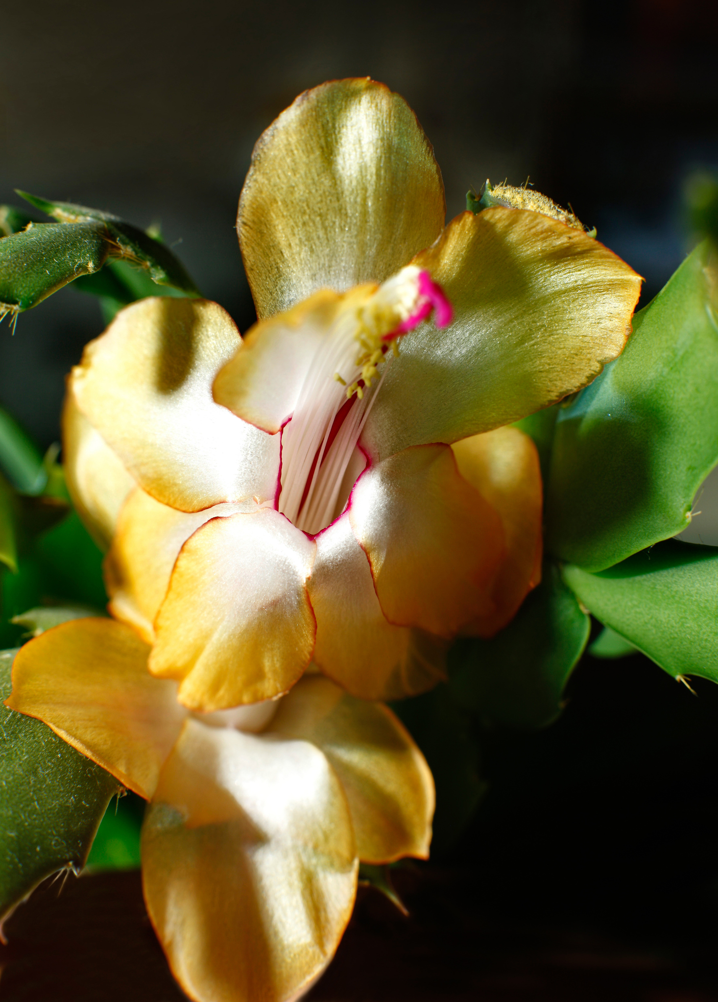 The Christmas cactus (Zygocactus) is native to the South American jungles. The flowers bloom once a year and come in shades of fuchsia, yellow, salmon, pink, white, orange, red and sometimes will even have a combination of the colors. The Christmas cacti are tropical plants. They require sunlight and the blooms last longer with cooler temperatures. Keep them away from heaters, fireplaces, radiators, furnace ducts, and other heat sources. Place in a sunny location while indoors and if outdoors during the summer, find a place that has a sun/shade mix to prevent the plant from getting burned. The best way to be sure your plant is getting just the right amount of water is to wait until the soil is dry on the top and still a bit moist toward the bottom. Then water the plant until the soil is saturated. Drain off any excess water that accumulates on the bottom. Then do not water again until the top half of the soil feels dry to the touch again. Well-drained soil is very important. A high quality cactus mix is great. If you can't find any that is made for cactus you can mix two parts regular potting soil with one part coarse sand.