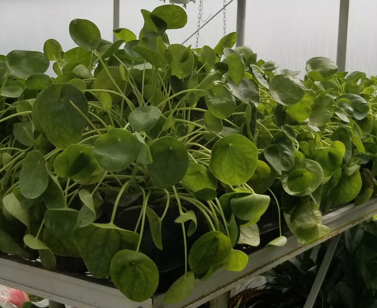 Greenhouse fresh from Hirt's Gardens since 1915. The Chinese Money Plant, also known as the missionary plant, lefse plant, pancake plant, UFO plant or just pilea (short for its scientific name of Pilea peperomioides) is originally from the southwestern Yunnan province of China. Popular lore maintains that a Norwegian missionary, Agnar Espegren, took cuttings home with him in the 1940s, and shared them with friends and family. Those plants were spread throughout Scandinavia, and eventually the world, as people passed cutting between friends. Where to Grow Light-wise, the best situation for a Chinese money plant is bright light, with no direct sunlight. Direct sun scorches leaves, and light shade may encourage larger leaves. They're said to be hardy down to freezing, and a period of cool temperatures will make them more likely to produce their tiny white flowers on pink stems. Care and Maintenance The Chinese money plant prefers a well-draining potting soil, and a pot with drainage holes is necessary. The soil needs to mostly dry out between waterings, with more watering required in warmer, sunnier weather. If the leaves start to look slightly droopy, that's a sign that the plant needs water. To keep your Chinese money plant nicely shaped, rotate it at least once a week to prevent it from getting lopsided. The large leaves tend to accumulate dust, so these plants benefit from regular showers, or at least wiping down of their leaves. Treat monthly with an all-purpose plant fertilizer during the spring and summer growing seasons. You may also want to put your plant outdoors as temperatures warm, but, again, take care to keep it out of direct sunlight. Measurements are approximate.