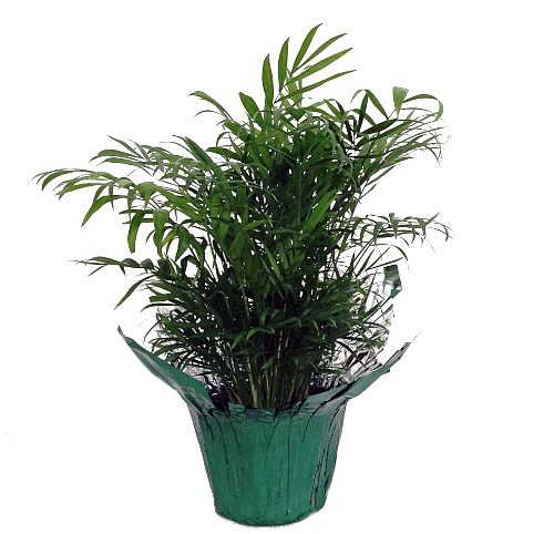 Parlor Palm: One of the most popular palms in the world, its ability to put up with low light, drought and general abuse is legendary. Additionally it flowers when still quite young. Too well known to need any description, it has been in use since Victorian times and is suitable for home or conservatory. It is also known as the Table palm or Neanthe bella palm but the correct name is Chamaedorea elegans 'Bella'. Parlor Palms can adapt to just about any typical office or home interior. It is grown primarily for indoor use in 6 inch - 14 inch containers, ranging in height from 18 inches to 3-4 feet You'll find it used as a table top plant, grouped together in beds as under plantings, and as a low stand alone plant. The Parlor Palm is one of the hardiest and impossible to kill houseplants! The plant you will receive is growing in a 4" pot with decorative pot cover.