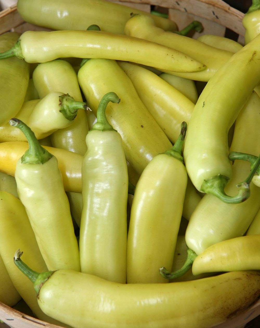 Hot Hungarian Yellow Wax Pepper: A hot version of the sweet banana pepper. 'Hungarian Wax' has about the same heat as a 'Jalapeno'. These medium-hot peppers are especially good for pickling. Canary yellow, then bright red at full maturity. They are 6 to 8 inches long and 2 inches across mature.