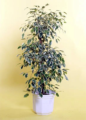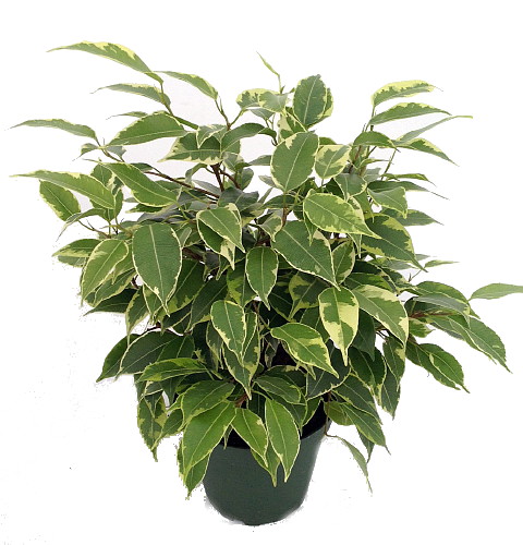 The Starlight Weeping Fig (Ficus benjamina 'Starlight' is a new variegated form of durable green Weeping Fig. Just like it's green counterpart, Starlight prefers very bright indirect light. Keep evenly moist, but not wet or dry. Trim as needed. Left alone the Starlight Weeping Fig can reach 6 feet tall. It makes the perfect house plant. Grown as a bonsai it has small, shiny dark green & cream leaves which are thicker than the standard ficus leaf but thinner than a Jade leaf. Develops a thick trunk and aerial roots at a relatively early age. Very easy indoor care. The tree is one of the best of the ficus for indoor and tropical bonsai. It is tough, durable and responds well to normal house plant care.