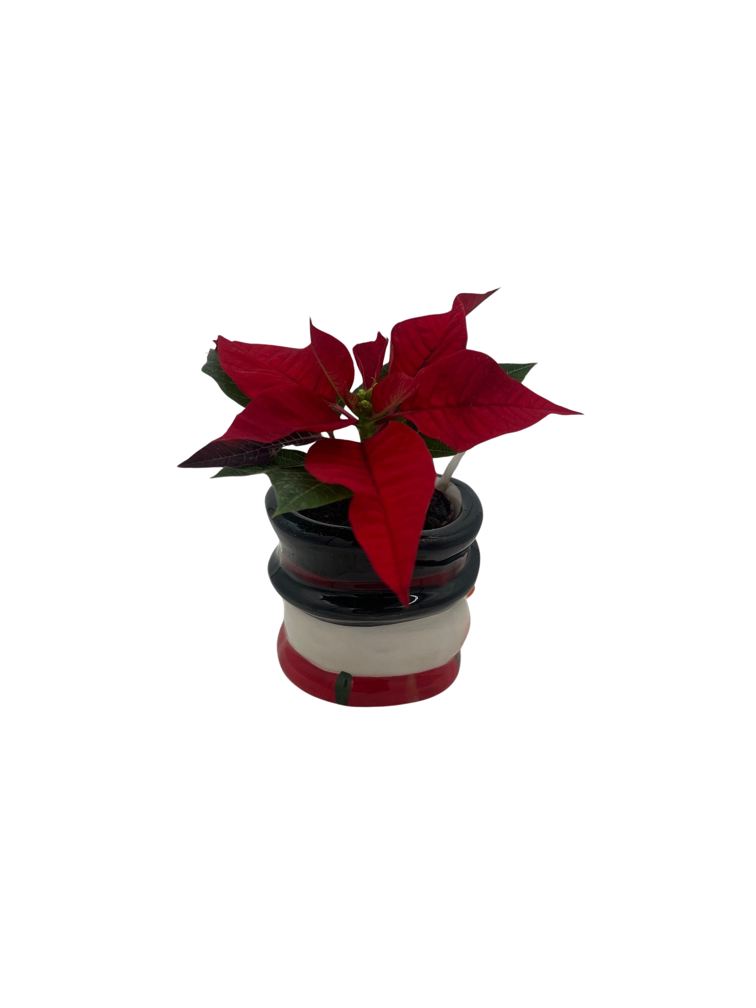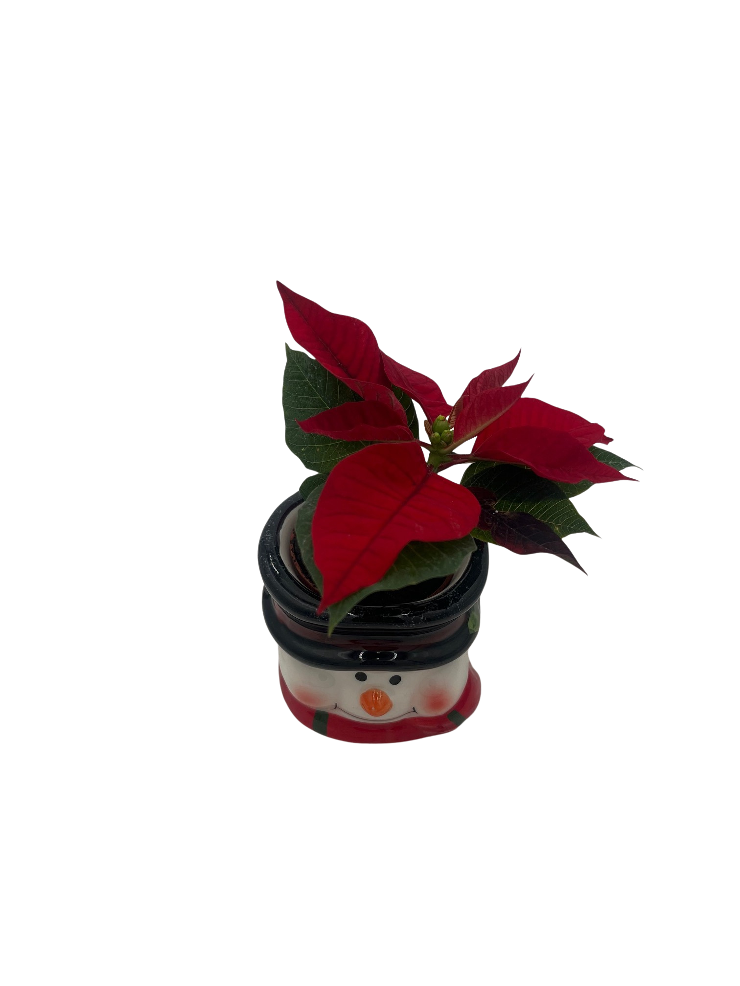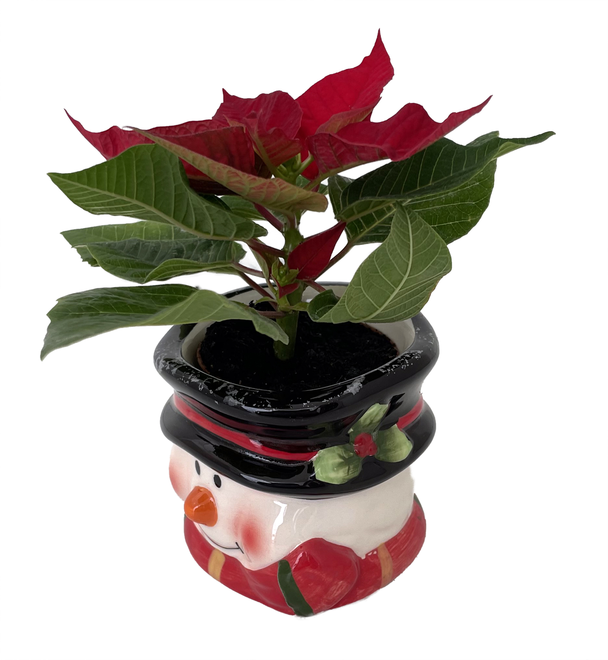 Jolly Snowman Ceramic Planter with Live Poinsettia Plant - 3x3" Pot
