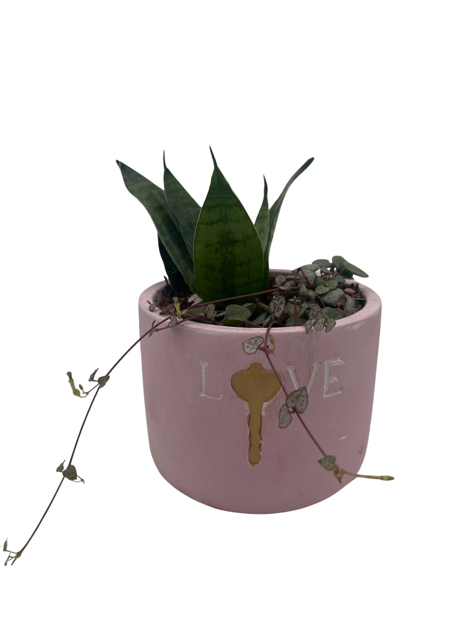 Key to Love Planter with Surprise Snake Plant and String of Hearts Plant - 4.25" x 3.5"