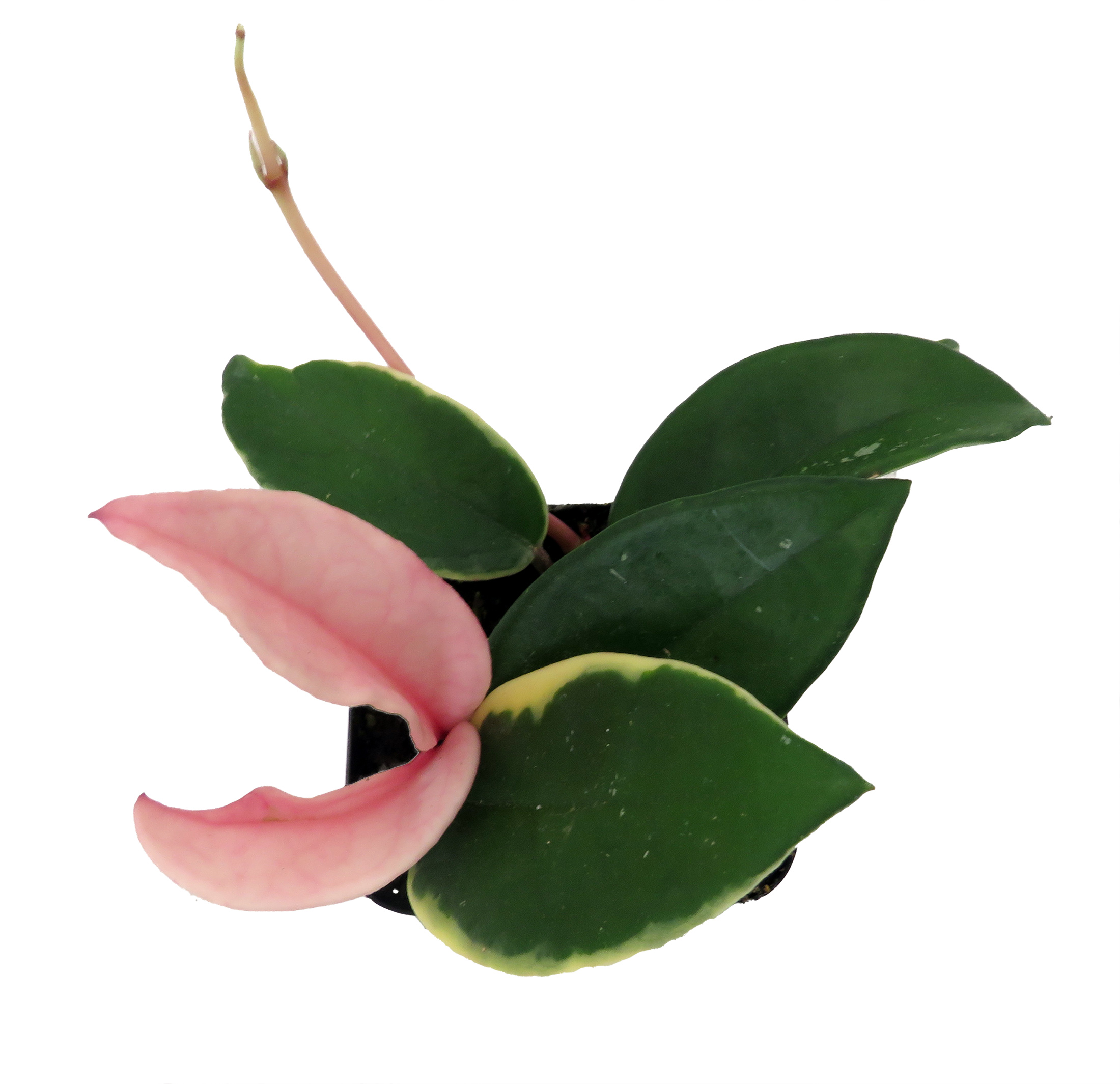 Krimson Queen Wax Plant - Hoya carnosa is one of 100 species of Hoya that are native to Eastern Asia and Australia. The this easy to grow houseplant Hoya carnosa was named for Thomas Hoym, gardener to the Duke of Northumberland at the end of the 18th century. Blooming Time: Summer: Clusters of attractive, star shaped, pink-white blossoms are produced in summer. The delicate flowers appear to be made of porcelain and are truly unique. Culture:Hoya carnosa does best in at least 4 hours of bright indirect or curtain-filtered sunlight. Night temperatures of 60 to 65 degrees and day temperatures of 70 degrees or higher are optimal. Water freely during flowering but allow the soil to become almost dry between waterings when the plants are not rapidly growing. Fertilize every 2 months in spring and summer. Do not remove the leafless spurs or stubs, on which new flowers appear every year. Propagation:Hoya carnosa can be propagated at anytime by air layering or by stem cuttings. A portion of the stem including one or more pairs of leaves will quickly produce roots in water or damp sand.
