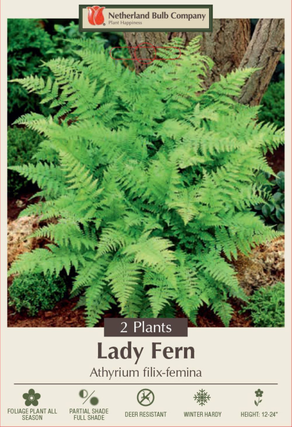Lady Fern - Athyrium filix-femina - 2 Top Size Roots -Hardy