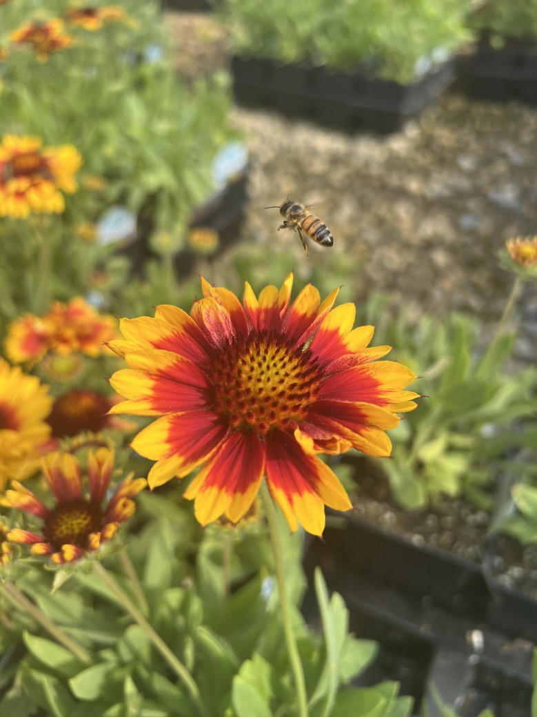 Intense yellow flowers flaunt an inner red band. Temperature determines the width of the band, but flowers typically display more yellow than red. Irresistible in bouquets and adoring butterflies will thank you for having some in the garden. Extremely long blooming! Well-branched, mid-sized selection, flowers early on sturdy stems. Gaillardia thrive in poor, sandy soils. The common name, blanket flower, refers to the resemblance to brightly patterned Native American blankets. Pairs nicely with the soft blues of perennial Geraniums. Zones 5-10.