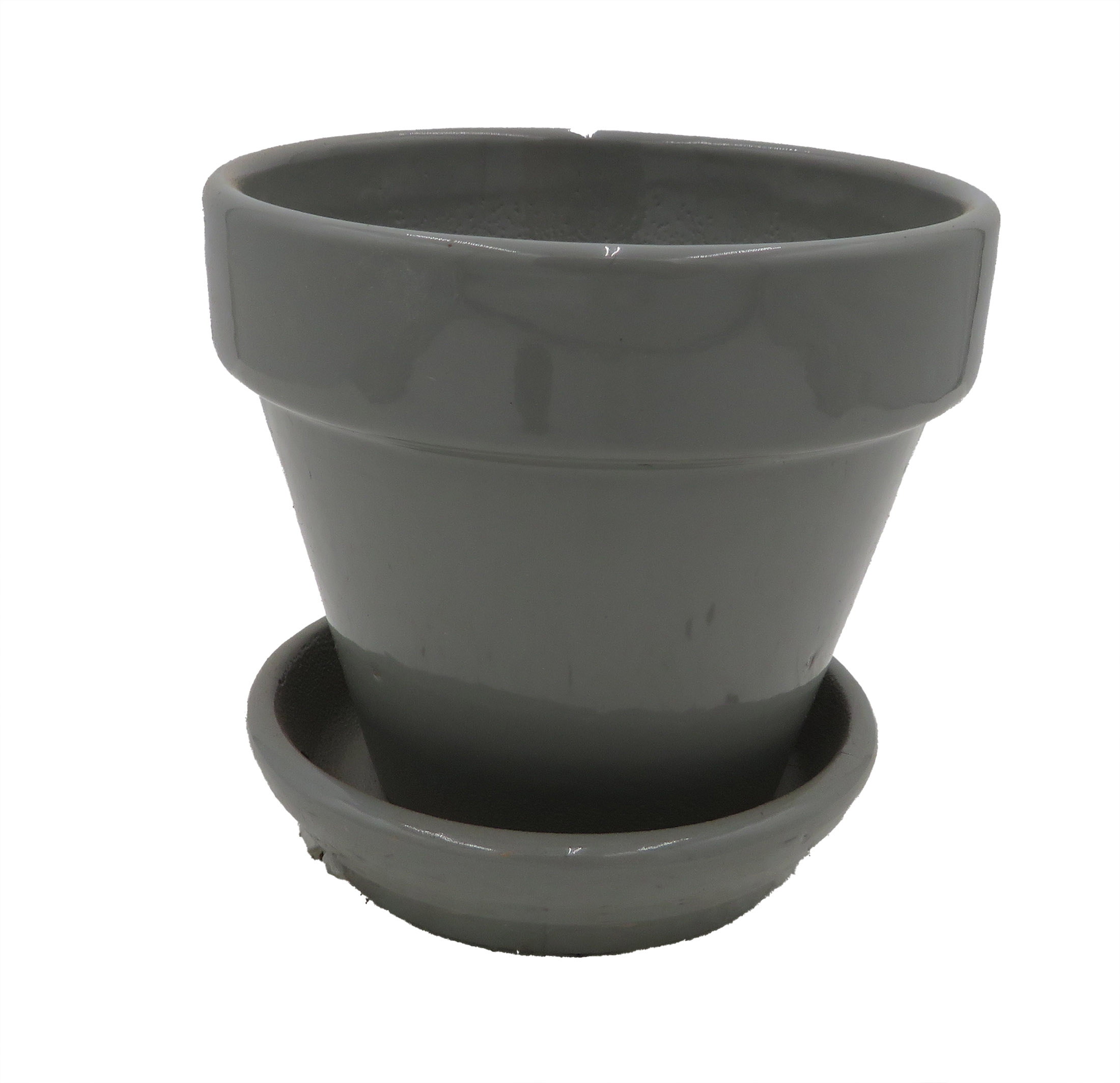 Mini Standard Pot with Attached Saucer - 2.75" x 2.5" - Grey