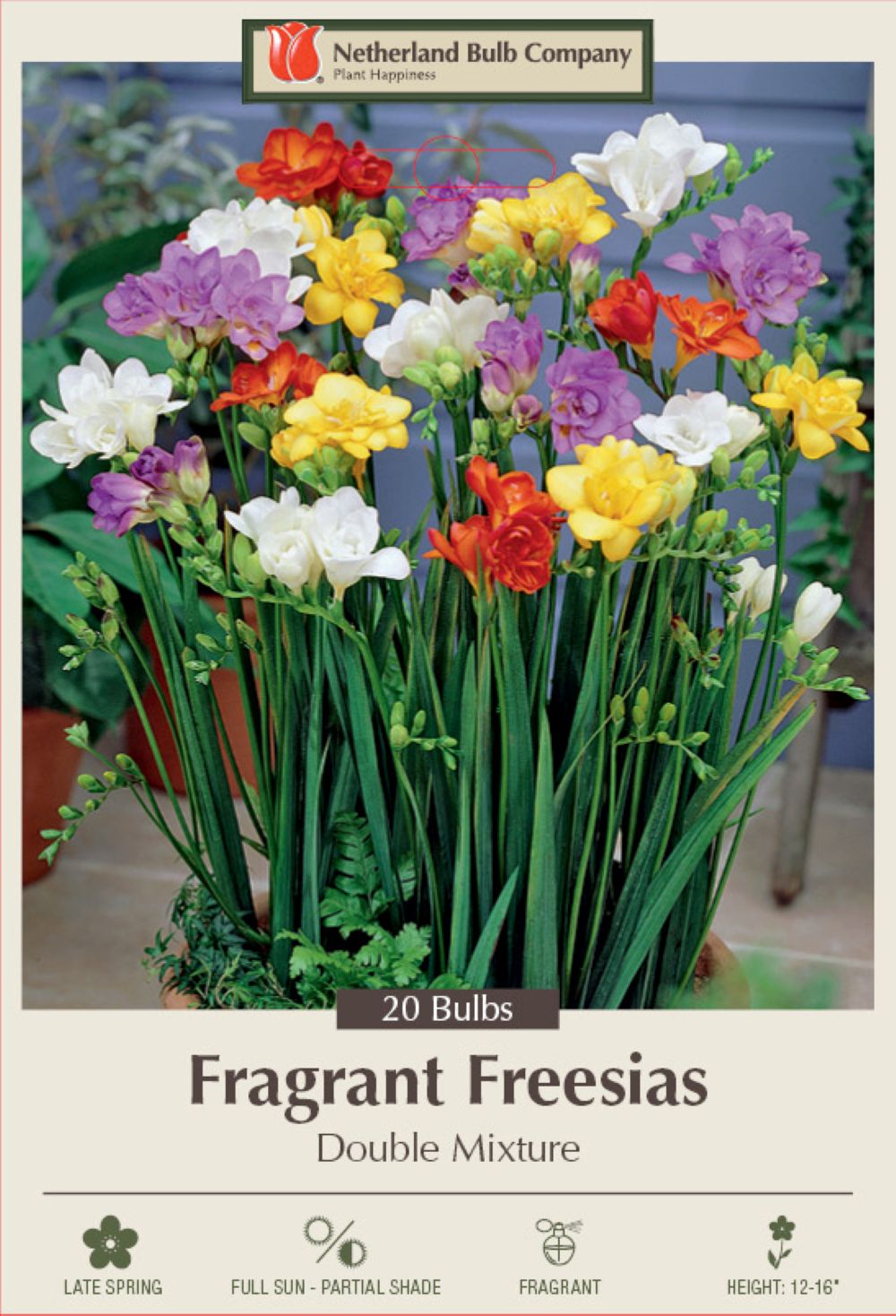Mixture of yellow, pink, purple, and white freesia bulbs Noted for their abundant delicate fragrance. Freesias make great cut flowers and add colorful cascades of flowers to the garden or home. One bulb can produce two flower stems. In cooler regions they can be grown indoors.
