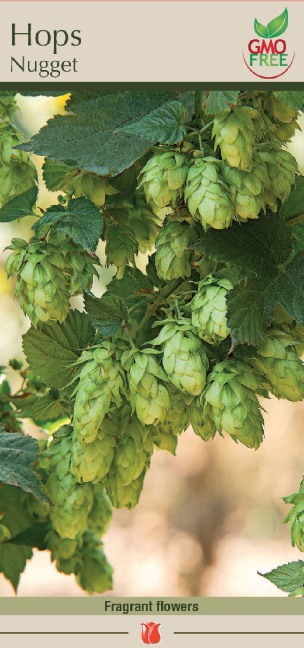 Nugget Hops Vine. Humulus lupulus Nugget. USDA Zones 2-9 - A high alpha acid bittering-type hop used for adding body and flavor to all styles of beer. No other vine is faster growing or more effective as an ornamental screen. Plants can grow up to 20 feet in one year when grown in a sunny location and are easily trained on a fence of trellis. Each year they die back to the crown in winter. In late summer the vines bear cone-like flowers that have a fresh, pine-like fragrance. The flowers are used in beer-making. Dark green, deeply lobed foliage is very attractive.
