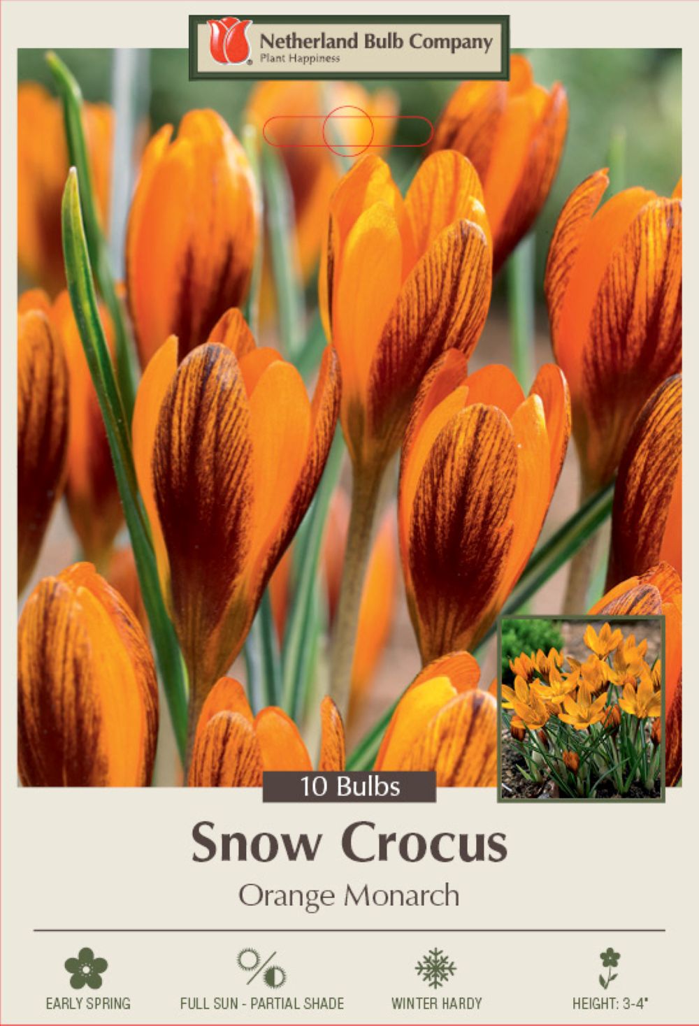 Orange Monarch Crocus open to reveal deep orange petals in creamy butterscotch tones. A refreshingly different color of crocus.