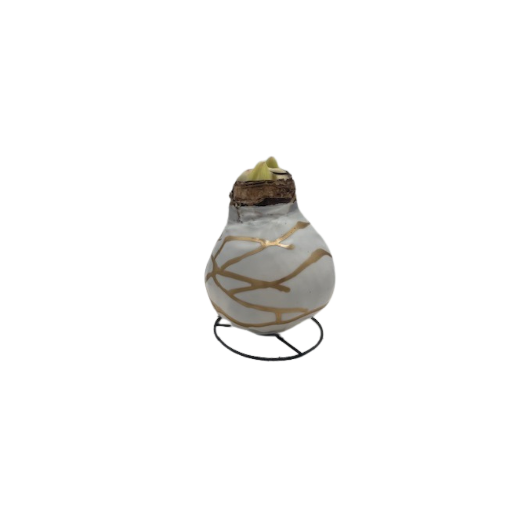 Orange Sovereign with Gold Lacquer Splatter Waxed Jumbo Amaryllis -Holiday Blooms
