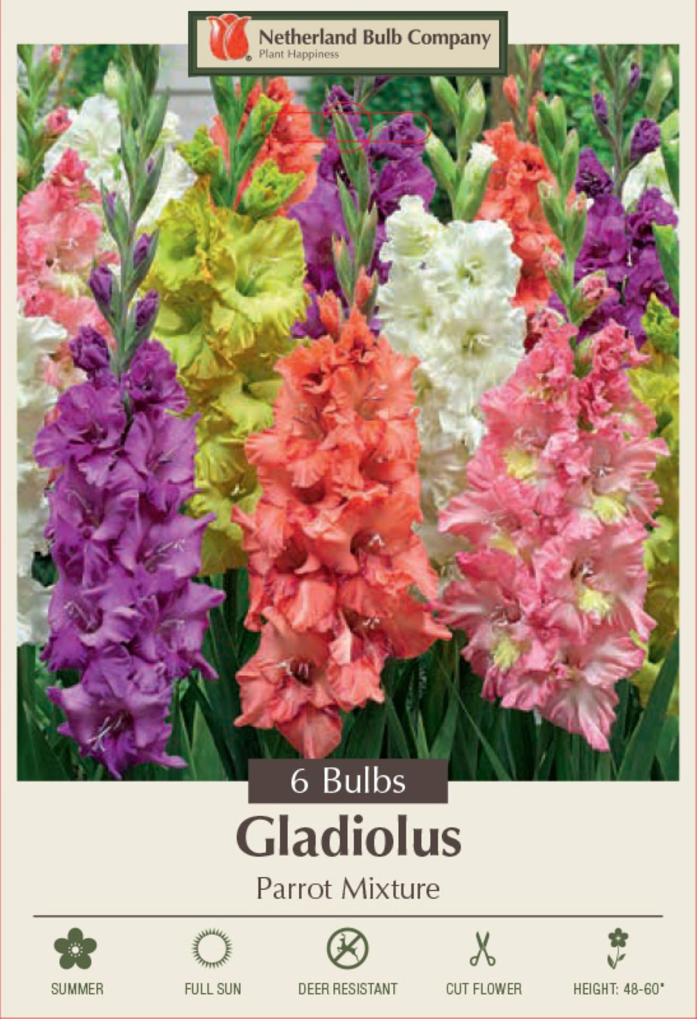 Parrot Mix Gladiolus 6 Bulbs 12/14cm Bulbs - Super Value!
