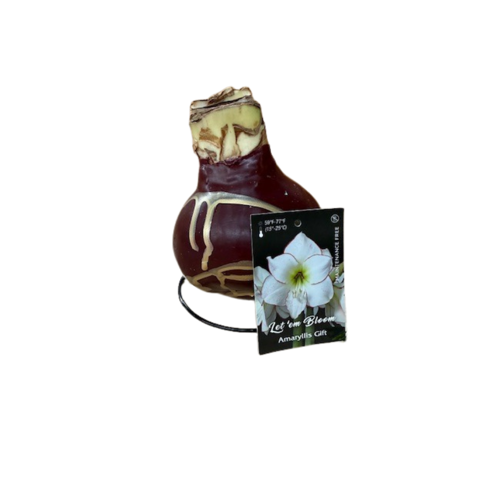 Our easiest-ever amaryllis needs no planting and no watering — the waxed bulb holds all the stored energy and water it needs to grow and bloom. A coiled wire embedded in the wax on the bottom of the bulb makes it freestanding. Simply place the bulb on any flat surface, set it in a clear vase or nestle it among other holiday decorations. Then watch in amazement as shoots begin to emerge from the bulb. In about 6-8 weeks the stunning flowers will begin to bloom. No watering, fertilizing or staking required. You can expect 2-3 flower stalks, each with up to four blooms. Note: Growth cracks may appear in the wax coating as the flower stalks emerge and progress to blooming.