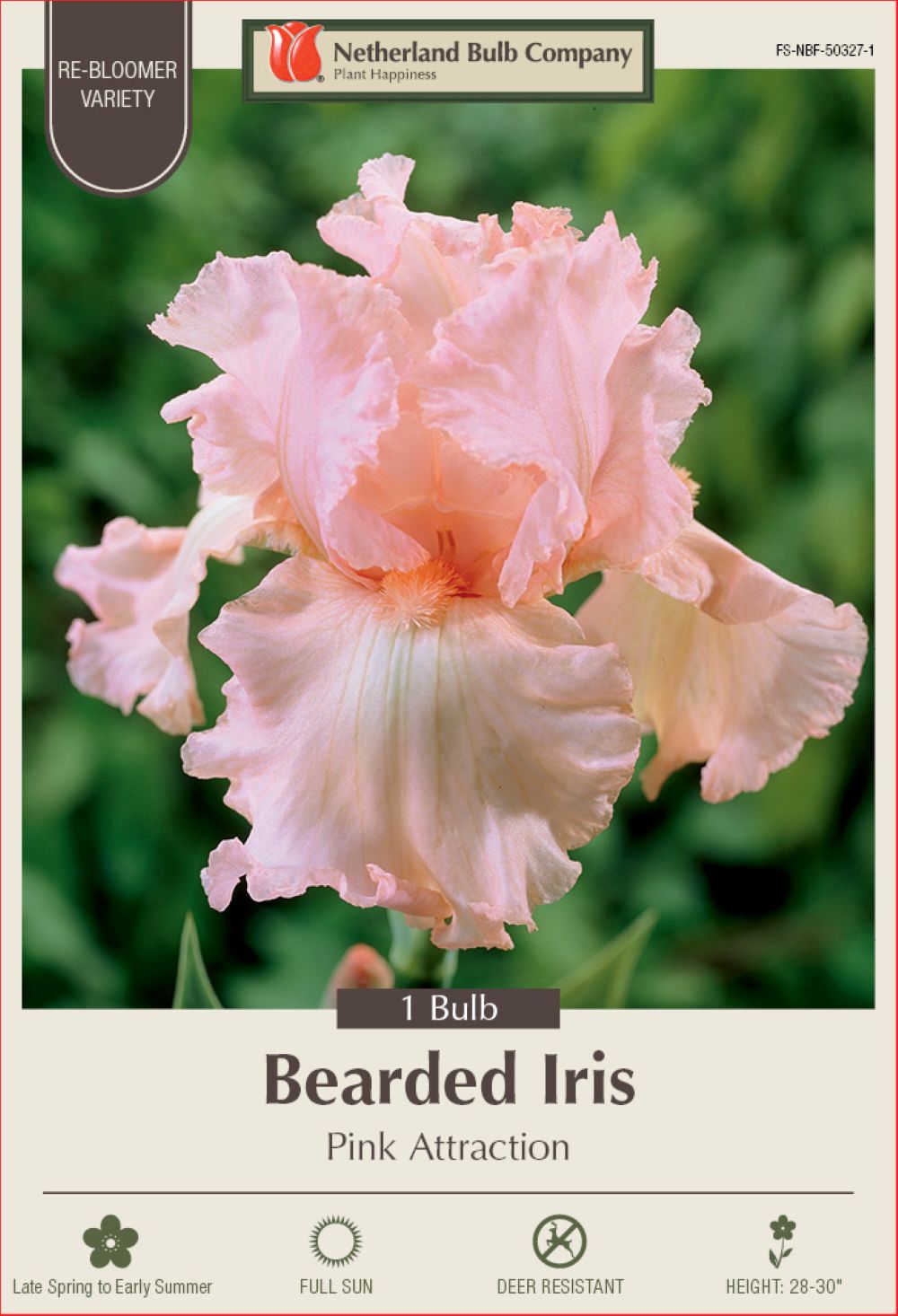 A pastel colored selection of hardy, drought, disease, and insect resistant Iris that first bloom in Spring and again in August through October. Outstanding Color! Soft pink standards and falls with a light orange beard.