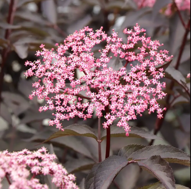 Pink Pony™ elderberry is not just an improved version of Black Beauty®– it’s a completely reimagined shrub. This new elderberry has vivid pink flowers that resist fading and bloom extra long. The bright flowers contrast beautifully with the consistently dark, bluish-black foliage, creating a striking dynamic in the garden or landscape. The vibrant summer flowers transition to deep red fall fruit when planted with Black Beauty, Instant Karma, Black Lace, or Laced Up elderberry. Thanks to its more refined habit and superb flowering, Pink Pony® Sambucus nigra has great container presence and undeniable impulse appeal.
