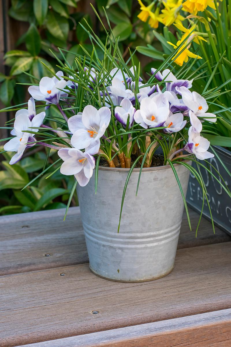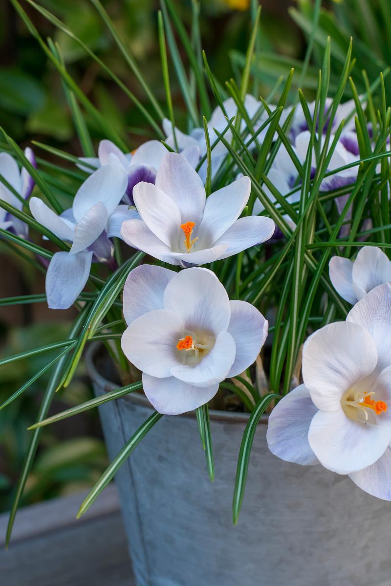 Delightful lavender-blue and white cup-shaped flowers. One of the very first bulbs to bloom in the spring garden, the vivid colors of Snow Crocus will delight you after a long winter. Happy in sun or shade beds, borders and woodlands, these species crocus are often planted directly in lawns for a cheery, unexpected display. Don't worry, by the time you need to cut the grass, the blooms will be long gone and the foliage will be safe to mow down.