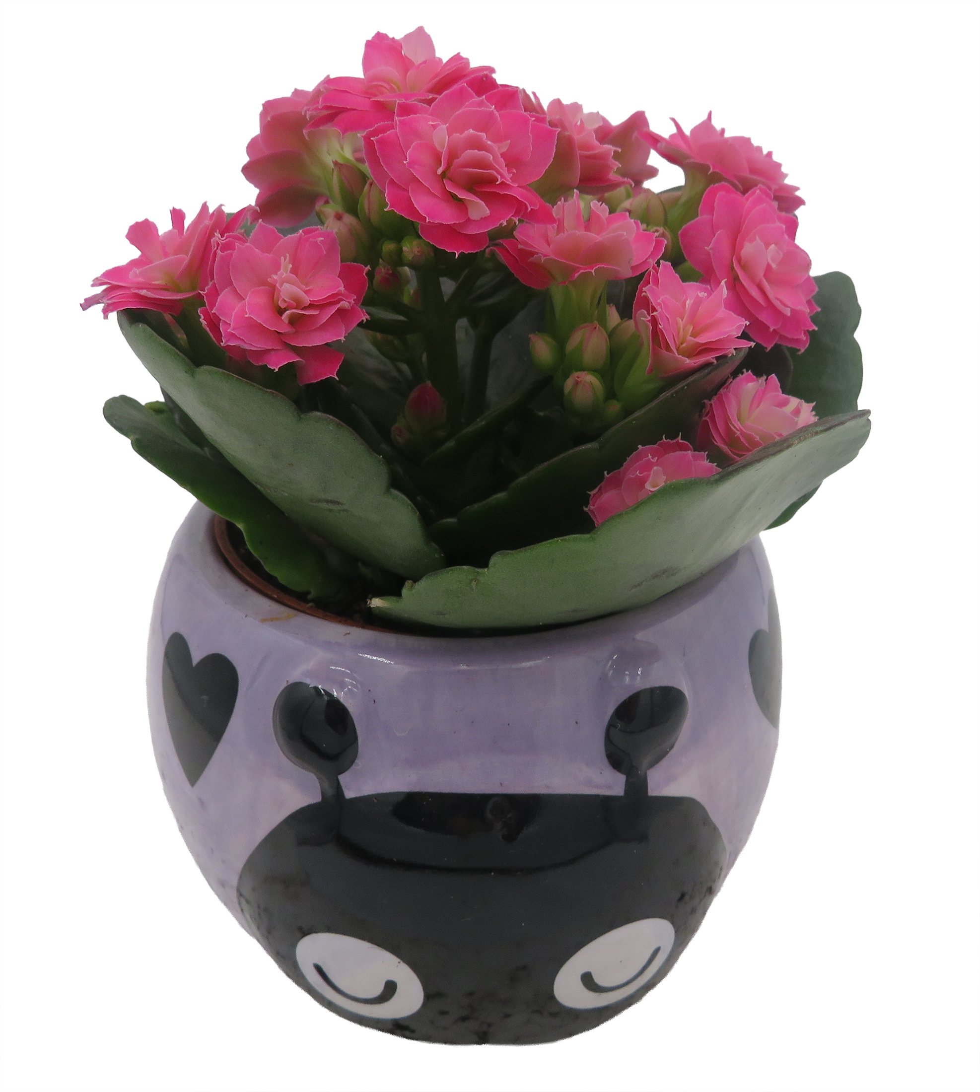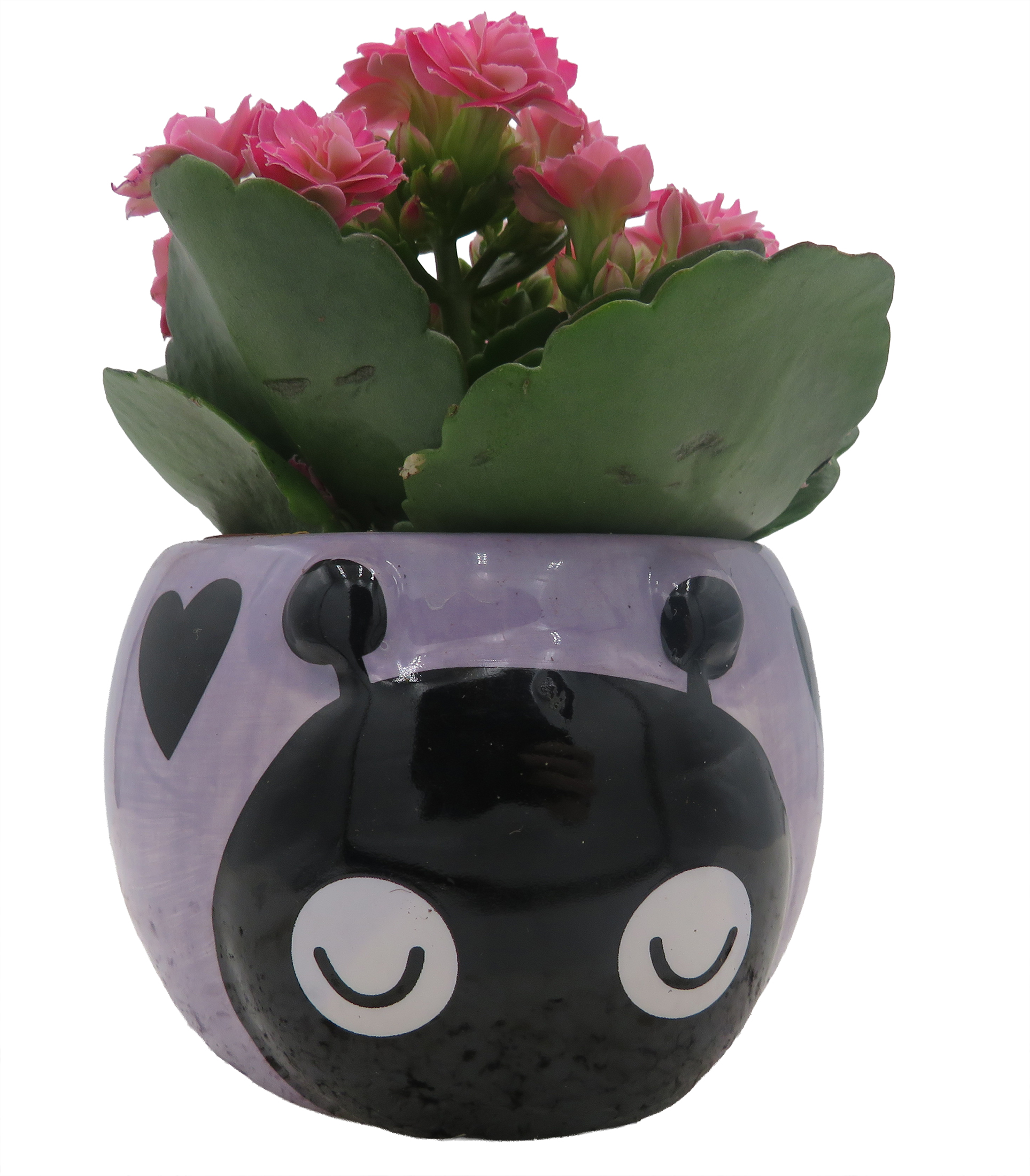 Purple love bug ceramic planter with surprise rose plant. Rose color will vary with no customizations. Prefers bright, indirect or artificial light.