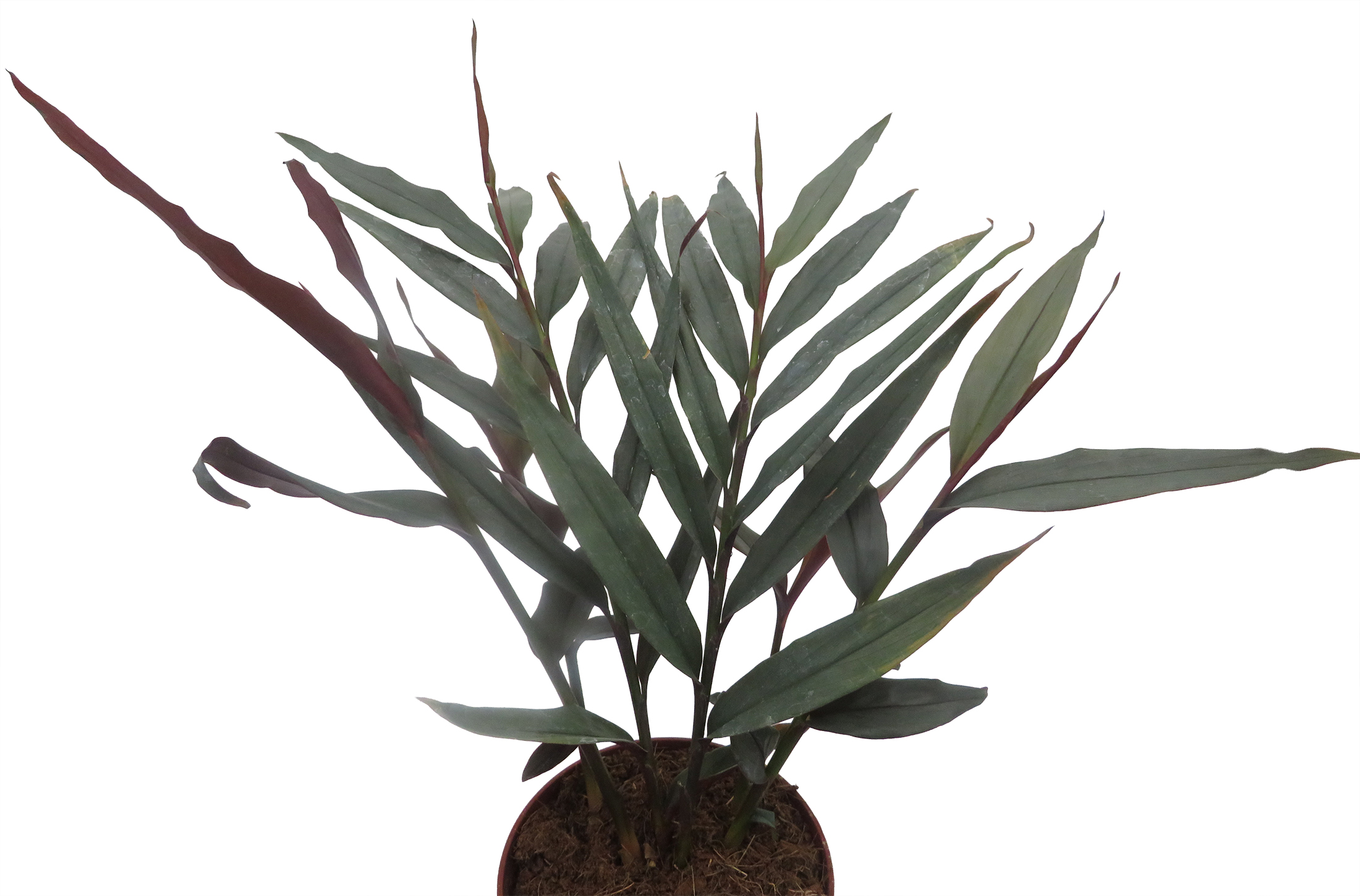 This variety of Ginger boasts dark green leaves with red undersides. Bamboo Ginger is also a fragrant ginger that looks like a dwarf bamboo bush with a great clumping habit! Perfect patio container plant. Prefers some shade. Mature height of 2-3'. Zones 7 and higher. Grow indoors, out, or on the patio.